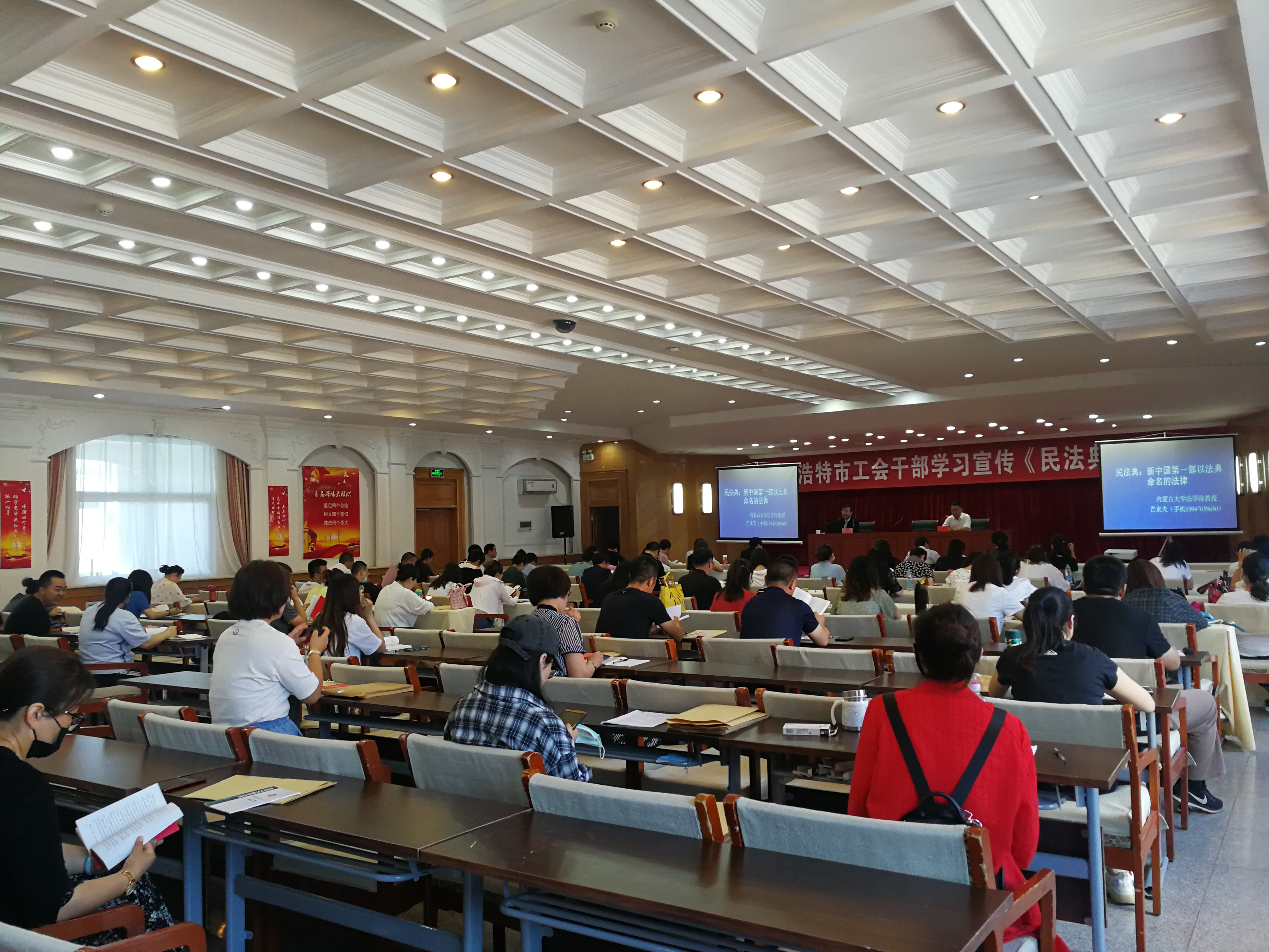这次培训,特聘请内蒙古大学法学院教授芒来夫授课。芒来夫由浅入深,从《民法典》编纂的背景、特征、意义、亮点、典型案例等7个方面进行了讲解,学员们认真听课,仔细做笔记,下课后围着老师继续提问题,踊跃互动。有的企业工会主席现场表示:回去以后要尽快做培训计划,也开办《民法典》培训班;有的旗县区工会主席要求市总工会把培训班办到企业,办到生产一线去;有的企业表示要制作展板,运用多媒体,加大《民法典》的宣传力度。学员们学习热情非常高涨,学习资料供不应求。