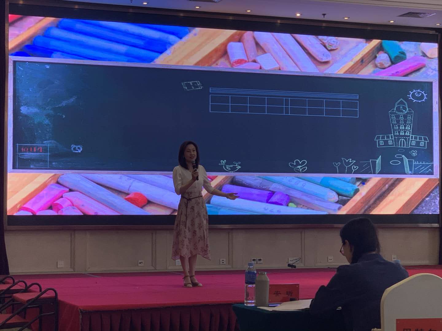 演讲比赛现场,田宇用生动的语言,充沛的感情讲述了自己及身边同事爱岗敬业、立足本职感人的故事。周威为大家演讲了《新时代奋斗的教师真美》。周威通过声情并茂的语言讲述了自己和身边同事扎根教坛,默默耕耘、无私奉献的感人事迹。周威讲道,“作为一名教师,我从我的前辈们身上看到了奋斗的美,读到了劳动的美,未来我们将继续努力前行,走好新时代长征路。”周威的演讲赢得现场观众和评委老师们的一致好评。评委老师现场点评到,周威的演讲可以说是完美的,没有瑕疵的,她的演讲让大家看到了新时代的教师风采,她是一个爱学生的老师,值得敬佩!