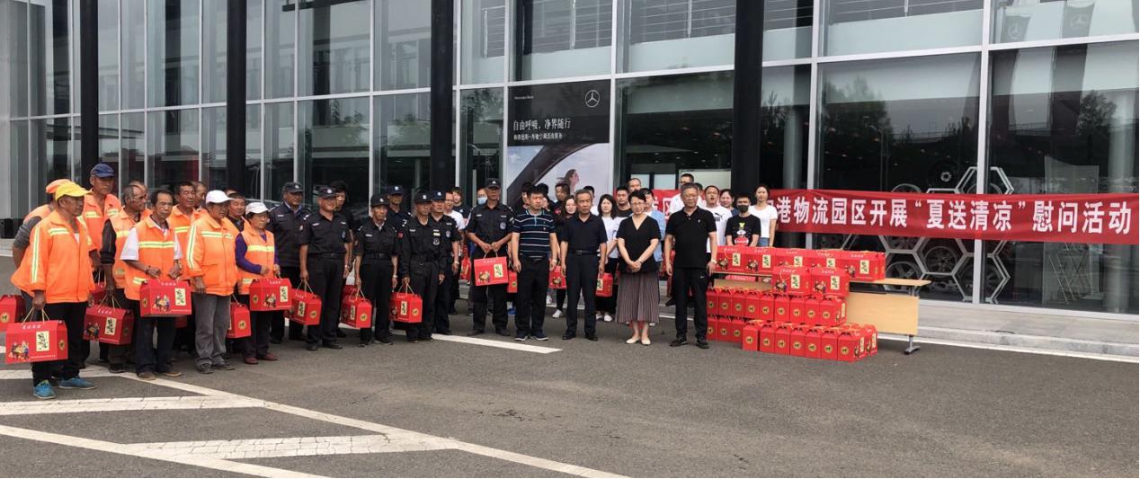 7月27日,开发区党群工作部专员李彩虹、机关工会主席刘浩波、副主席白文晔等,来到白塔空港物流园区为奋战在户外的一线员工,其中包括保安、环卫、网格员等共计89人送去了防暑降温慰问品。