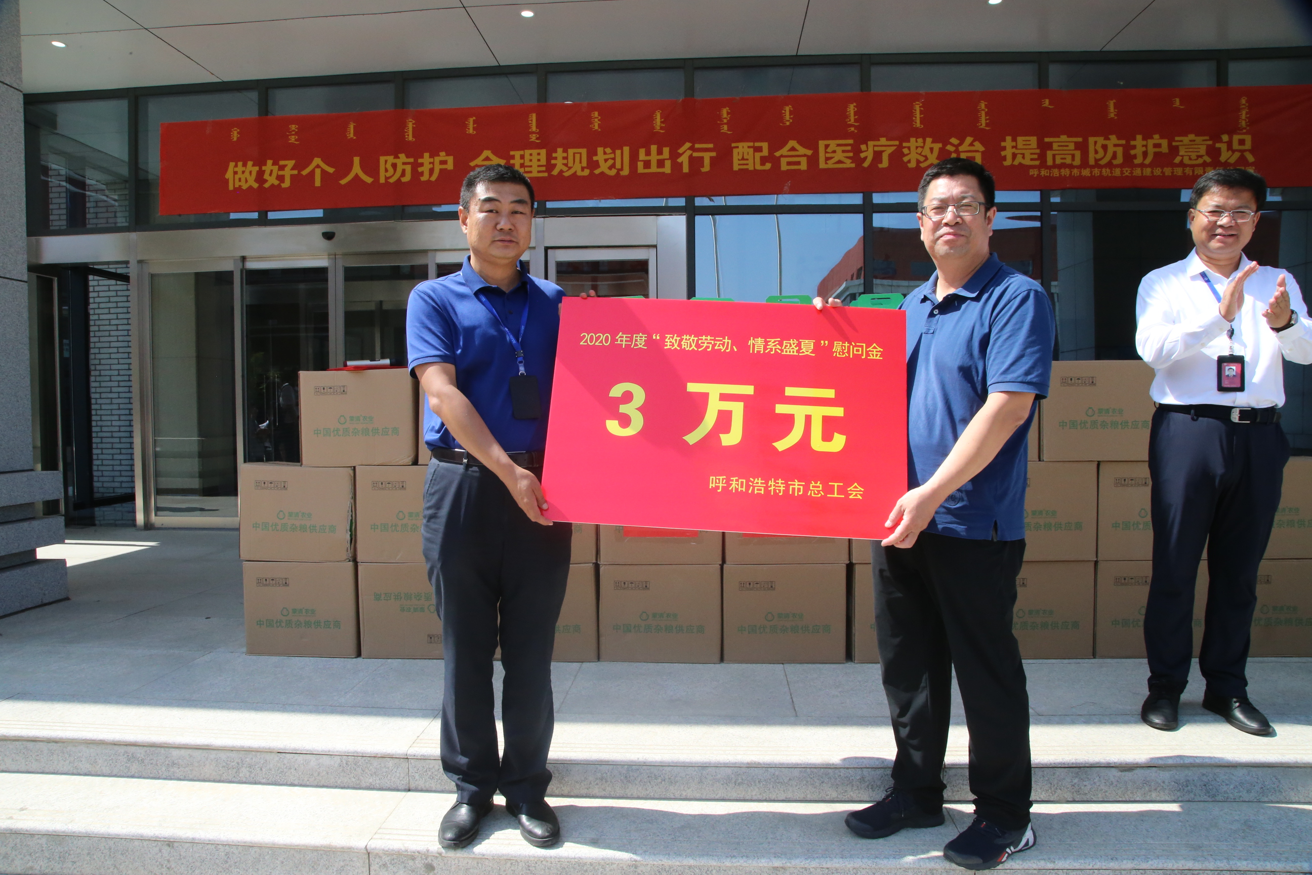 7月31日下午,呼和浩特市人社局党组成员、副局长、市总工会兼职副主席兰军,呼市三产服务业工会主席田喜武一行赴呼市地铁运营公司三间房车辆段,开展“致敬劳动、情系盛夏”送清凉慰问活动。