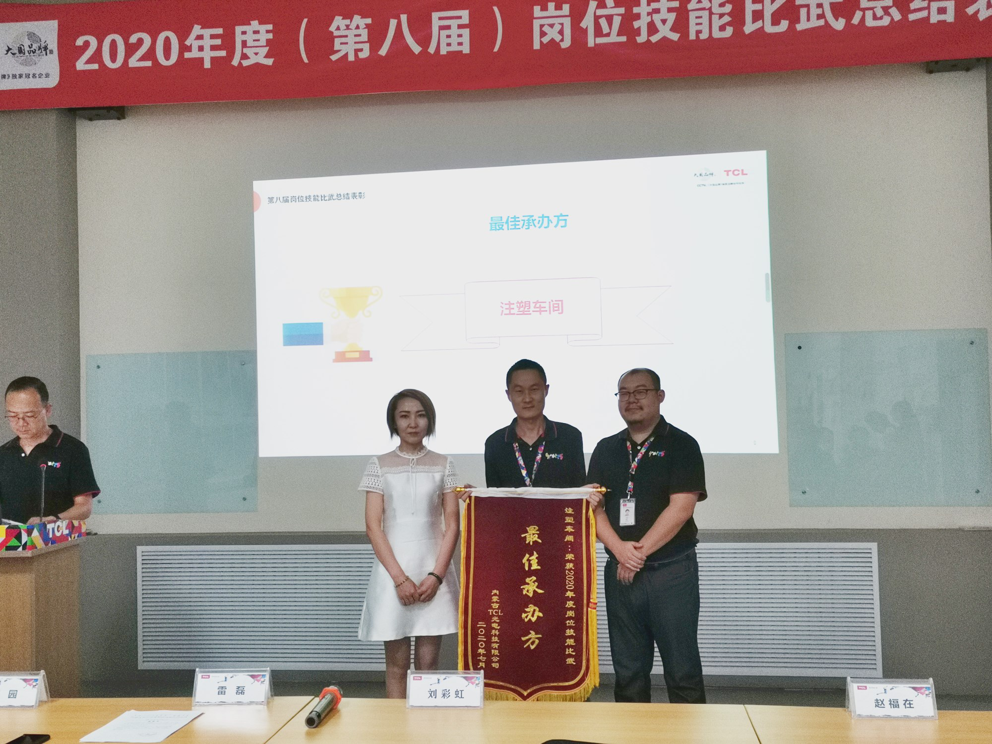 此次技能比赛共有来自园区11家企业的200余名职工参加。经过两个月的紧张比赛和严格、公正的评比,大赛结果于今日正式揭晓。来自模组装配、物料配送、叉车技能等30余个项目的49名职工分获各类奖项,大会对获奖职工进行了现场表彰并给予工资晋级奖励,刘彩虹和TCL总经理雷磊为获奖员工和班组颁发了证书和锦旗。