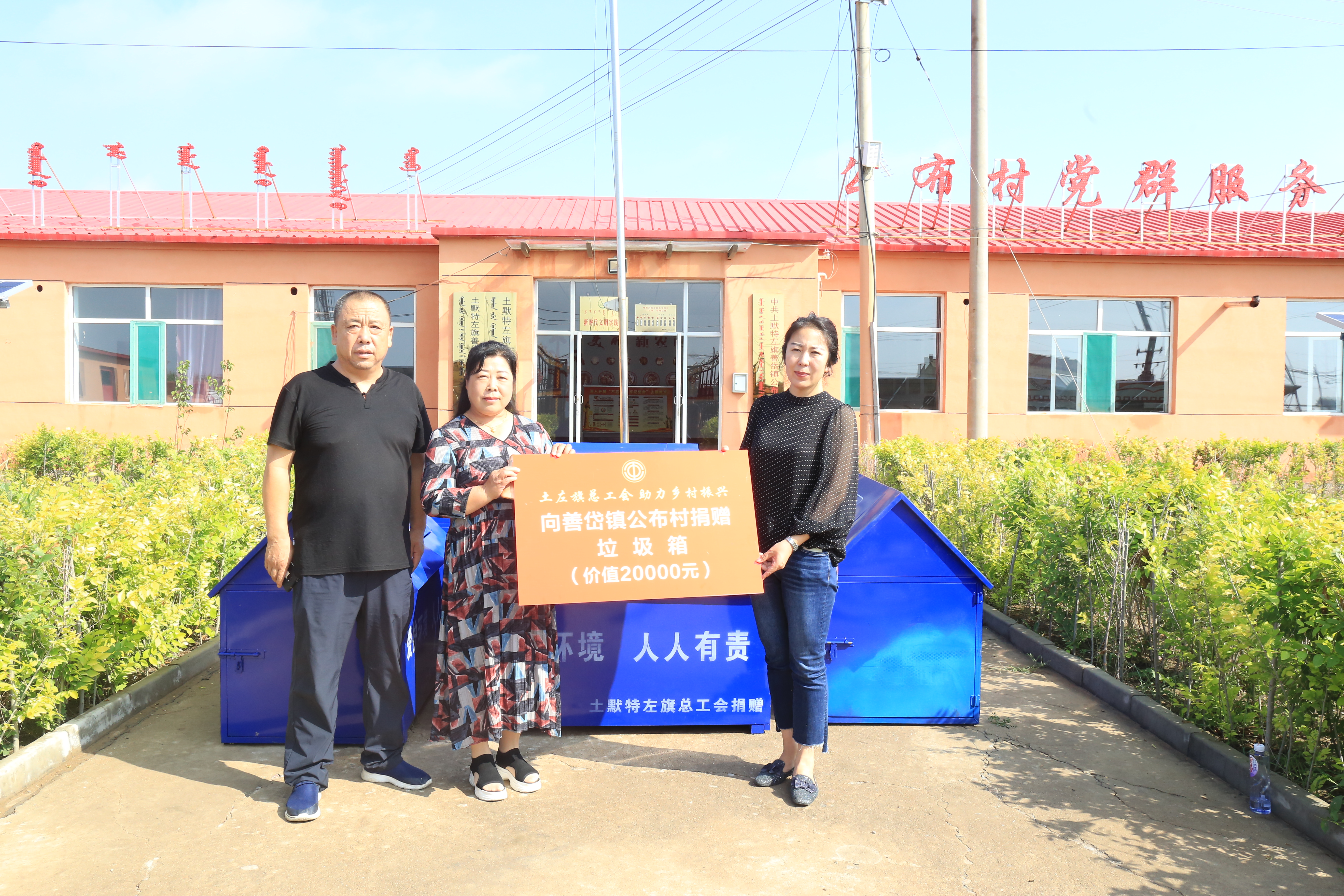 为发挥帮扶单位作用,改善公布村村容村貌,补齐基础设施短板,助力打赢脱贫攻坚战,持续巩固脱贫成果,8月13日,呼和浩特市土左旗总工会向善岱镇公布村捐赠了12个环保垃圾箱,用实际行动支持乡村人居环境卫生集中整治工作,助力美丽乡村建设。