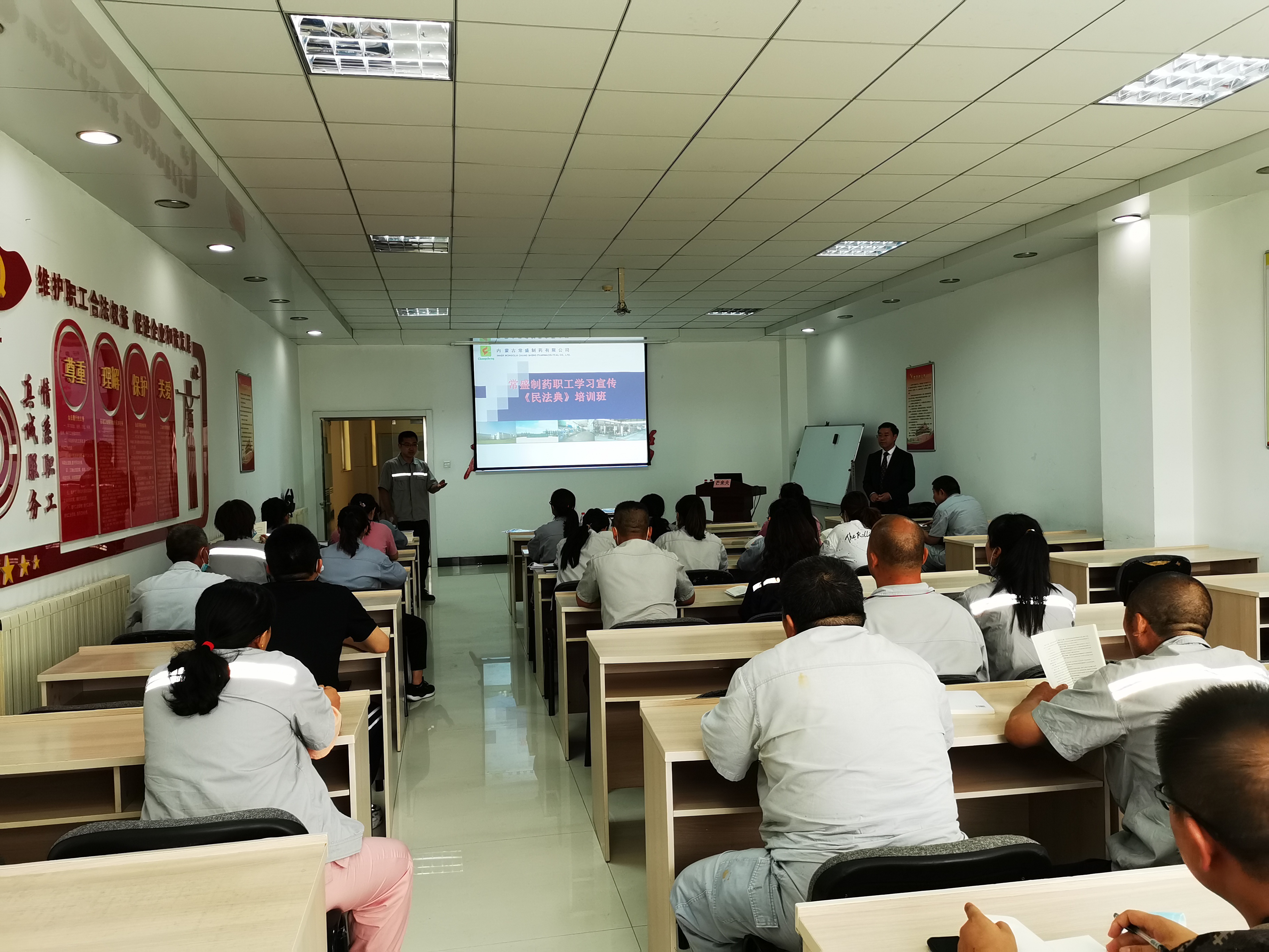 下午,在托县总工会的组织下,芒来夫老师深入常盛制药有限公司,为该企业60多名职工进行了《民法典》专题授课。
