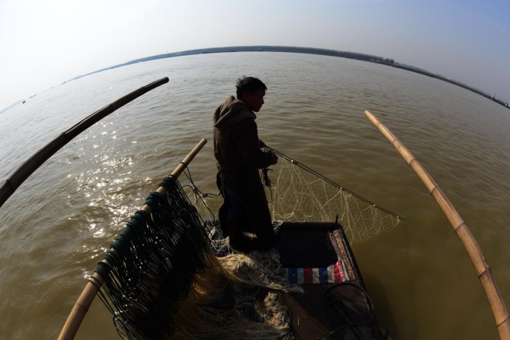 2016年长江禁渔期提前于3月1日开始,持续4个月时间。渔民们抓紧年后短短的捕捞期开工作业,尽管每日出船劳作10多个小时,但难有收获,经常是空网上岸。(2016年2月18日,新华社记者 程敏 摄)