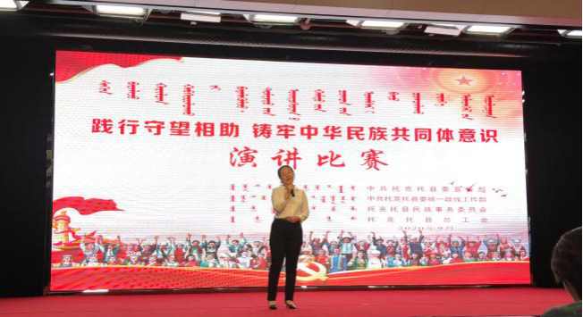 为深入贯彻习近平总书记关于民族团结工作的重要指示精神,进一步深化民族团结进步宣传教育,开展好第37个民族团结进步活动月,由托克托县委宣传部、托克托县委统一战线工作部、托克托县民族事务委员会、托克托县总工会联合举办的“践行守望相助,铸牢中华民族共同体意识”演讲比赛,经过预赛、决赛于9月29日下午圆满结束。