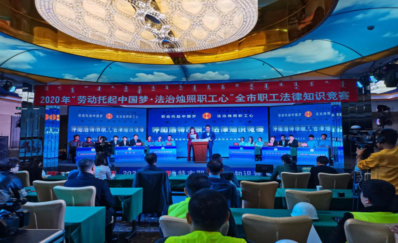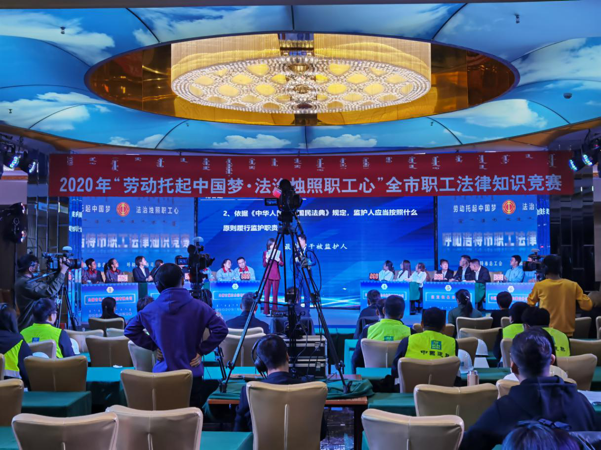 为深入学习贯彻党的十九大精神,落实“七五”普法规划,在全市职工中大力弘扬社会主义法治精神,培育法治理念、树立法治意识,11月18日,呼和浩特市总工会与呼和浩特市司法局共同举办了2020年“劳动托起中国梦•法治烛照职工心”全市职工法律知识竞赛。