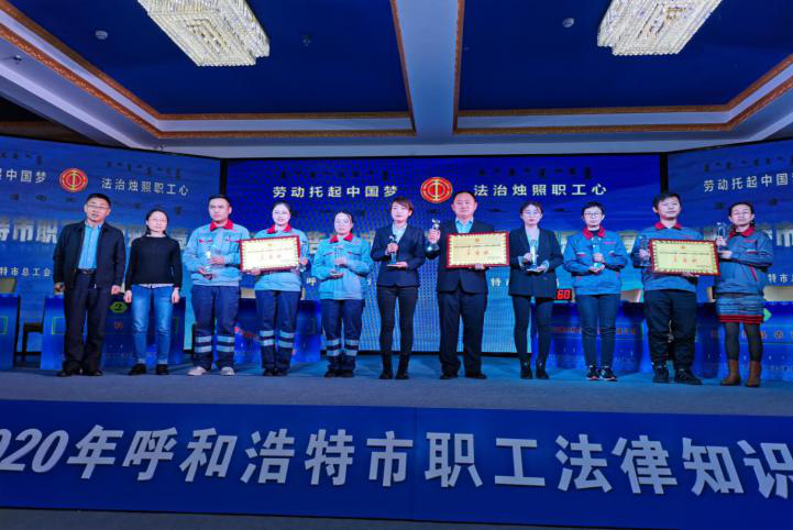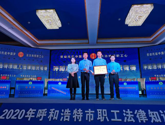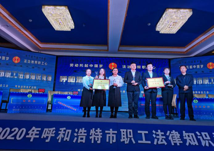 经过激烈角逐,中建二局一公司内蒙古分公司代表队获得2020年全市职工法律知识竞赛一等奖;托克托农商行代表队、内蒙古塞北粮仓农业发展有限公司代表队获得2020年全市职工法律知识竞赛二等奖;内蒙古电力建设集团有限公司代表队、赛科星代表队、内蒙古冀东水泥有限公司代表队获得2020年呼和浩特市职工法律知识竞赛三等奖。