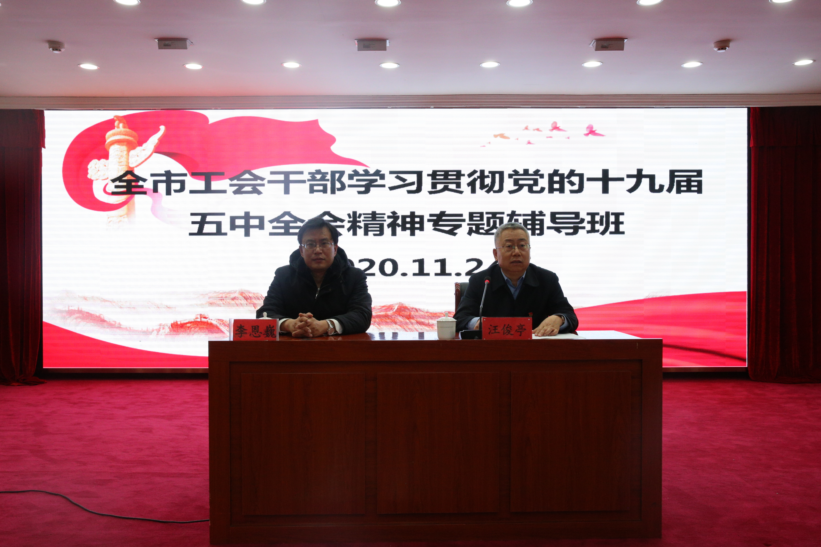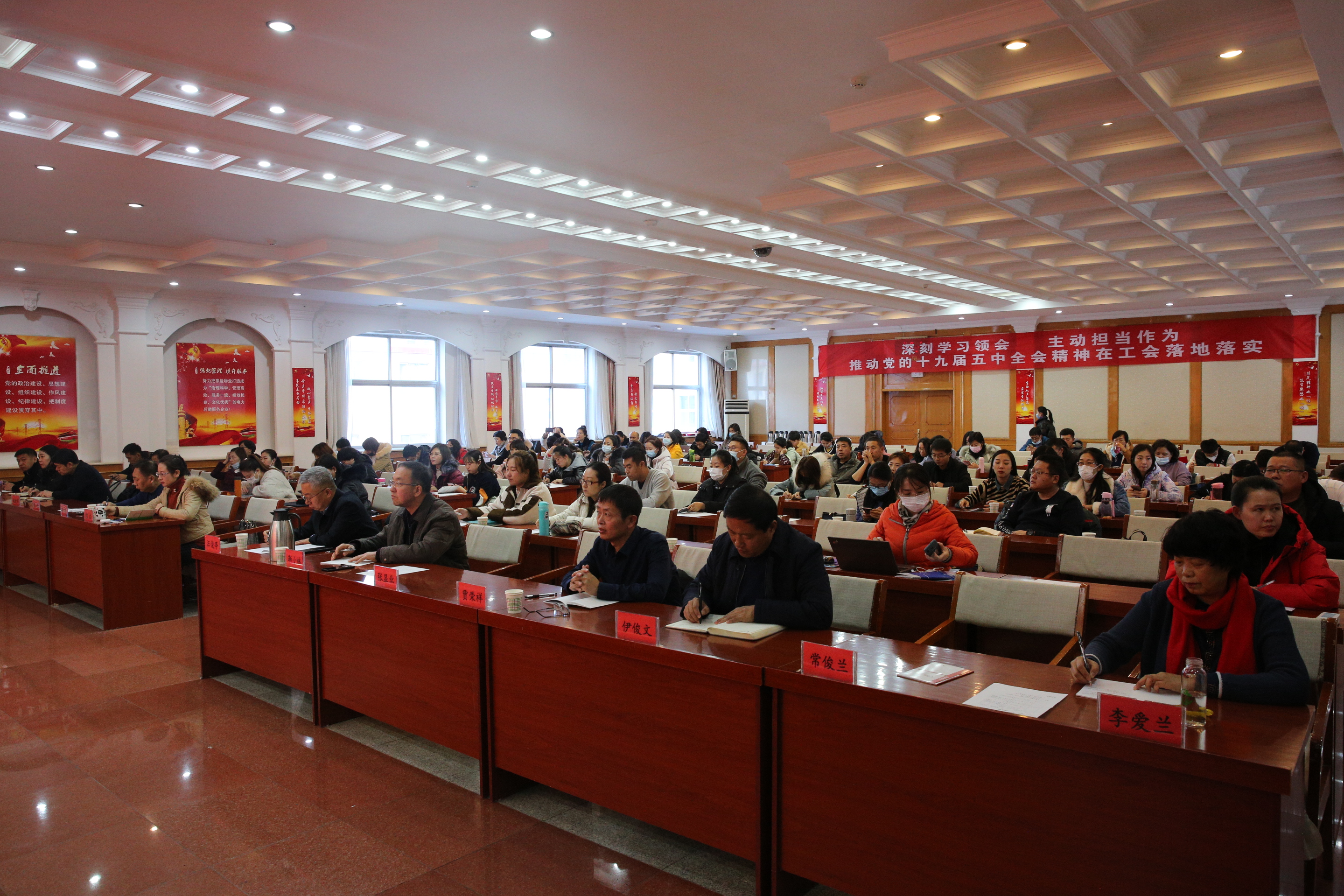 学习宣传贯彻党的十九届五中全会精神,是当前和今后一个时期的重要政治任务,为进一步深刻理解把握习近平总书记重要讲话精神,增强学习宣传贯彻党的十九届五中全会的政治自觉、思想自觉和行动自觉,11月24日下午,呼和浩特市总工会举办了全市工会干部学习贯彻党的十九届五中全会精神专题辅导班。市总工会党组书记、副主席汪俊亭出席,全市各旗县区工会主席和各基层单位工会干部,共160余人参加了此次培训。