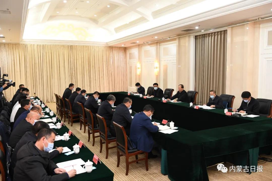 12月1日,自治区党委书记、人大常委会主任石泰峰在乌兰察布市四子王旗主持召开四子王旗脱贫攻坚工作座谈会。记者 袁永红 摄
