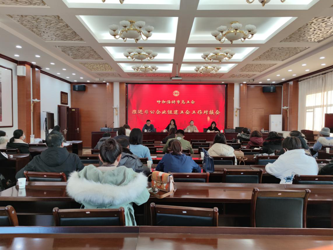 为进一步优化呼和浩特市营商环境,巩固工会干部“一对十”包联企业制度建设成果,继续深入调查呼市非公企业需求及建会情况,12月4日,呼和浩特市总工会邀请到呼市部分非公企业代表,召开推进非公企业组建工会工作对接会,市总工会基层部部长王佳慧、基层部及财务部工作人员参会。
