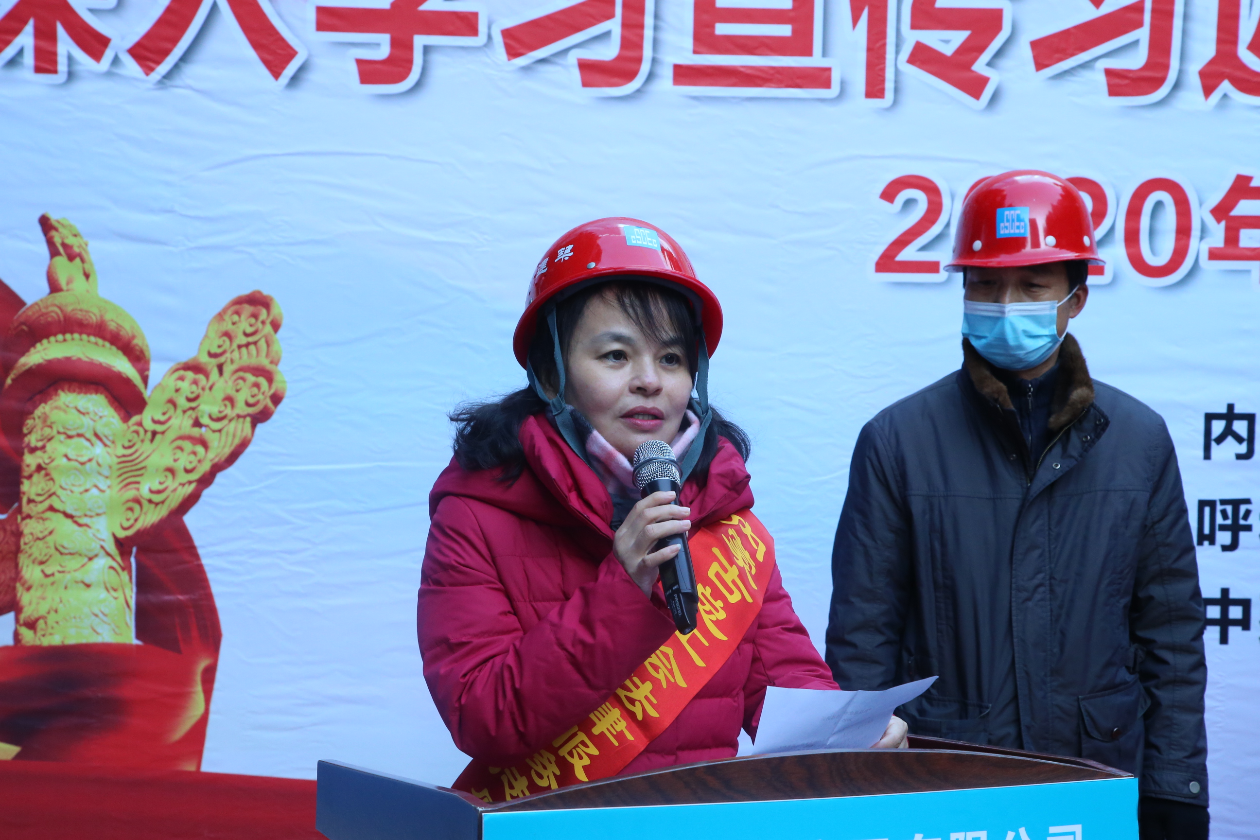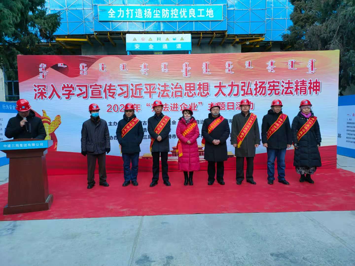2020年12月4日是我国第七个国家宪法日,本周也是第三个“宪法宣传周”。为了增强职工宪法意识,弘扬宪法精神,加强宪法实施,全面推进依法治国,12月4日上午,自治区总工会、自治区人社厅、呼市总工会共同主办了深入学习习近平法治思想、大力弘扬宪法精神“宪法进企业”主题日活动,走进了中建三局内蒙古分公司呼市14中项目部,为这里的建筑职工进行宪法宣传。