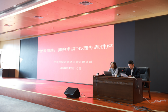 为全面提升员工心理素质,保障公司各项工作高效开展,12月10日,地铁运营公司工会特邀内蒙古师范大学资深教授格根图雅为全体员工进行“管理情绪、拥抱幸福”心理专题讲座,200余人参加学习。