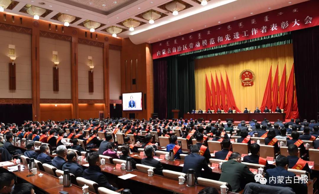 自治区党委副书记、自治区主席布小林主持大会,自治区领导李秀领、刘奇凡、白玉刚、张韶春、吴团英、艾丽华出席,自治区党委副书记、政法委书记林少春宣读表彰决定。 石泰峰代表自治区党委和政府,向受到表彰的劳动模范和先进工作者表示祝贺,向全区各族工人、农牧民、知识分子和其他各阶层劳动群众致以崇高敬意和诚挚问候。他说,近年来,全区工人阶级和广大劳动群众在以习近平同志为核心的党中央坚强领导下,积极投身内蒙古改革发展的火热实践,为决胜全面建成小康社会、决战脱贫攻坚发挥了主力军作用,用智慧和汗水谱写了一曲曲激昂嘹亮、壮美动人的劳动赞歌。今天受到表彰的劳动模范和先进工作者是全区各行各业劳动群众的杰出代表,大家的先进事迹和崇高精神感人至深、催人奋进。石泰峰指出,现在“十三五”即将收官、“十四五”即将到来,在新的历史起点上推动内蒙古实现新的更大发展,需要全区上下真抓实干、接续奋斗、共同努力。全区工人阶级和广大劳动群众要继承和发扬光荣传统,以崭新的主人翁姿态、卓越的劳动创造、顽强的拼搏精神,艰苦奋斗、激情创业,更加积极有为地奋进“十四五”、建功新时代。要深入学习贯彻习近平新时代中国特色社会主义思想和习近平总书记对内蒙古重要讲话重要指示批示精神,更加自觉做到“两个维护”,坚定不移听党话、矢志不渝跟党走。要努力做经济社会高质量发展的助推者、创新创业创造的先行者、全面深化改革的推动者、社会和谐稳定的维护者,为我区探索走好以生态优先、绿色发展为导向的高质量发展新路子贡献智慧和力量。要大力弘扬劳模精神、劳动精神、工匠精神,引领和鼓舞全区各族人民干出无愧于时代的业绩。要不断获取新知识、掌握新技能、提高新本领,努力成为知识型职工、技能型能手、复合型人才。各级党委和政府要认真践行以人民为中心的发展思想,重视提高劳动者素质,重视加强劳模工作,实现好、维护好、发展好人民群众根本利益,让劳动者更有保障、更有尊严。各级工会组织要履行好维护职工合法权益、竭诚服务职工群众基本职责,更好带领广大职工积极投身现代化内蒙古建设。各级党委要加强和改进对工会工作的领导,为工会组织履职尽责、发挥作用创造良好环境。布小林指出,全区上下要尊重劳模、关爱劳模,实现好、维护好、发展好劳动者合法权益,努力建设高素质劳动大军。要大力宣传劳动模范和先进工作者,讲好劳模故事、劳动故事、工匠故事,弘扬劳动最光荣、劳动最崇高、劳动最伟大、劳动最美丽的社会风尚,激励全区广大劳动者积极投身经济社会发展的火热实践,在全面建设社会主义现代化国家新征程中谱写内蒙古发展的新篇章。