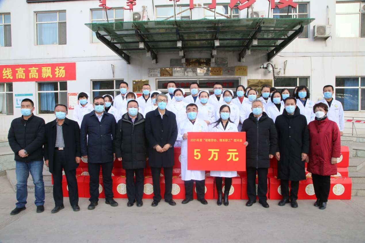 在慰问呼市二医院时,傲木格关切的询问坚守在一线的医护人员工作和生活情况,为他们送去5万元慰问金。傲木格指出:一线医务人员用热血和激情践行使命与担当,维护了首府人民的生命安全和健康。希望大家继续发扬“敬佑生命、救死扶伤、甘于奉献、大爱无疆”的职业精神,服务好患者的同时也保护好自己,做好防护,牢记重托、不辱使命,圆满完成疫情防治的各项任务,工会组织永远是大家的坚强后盾。