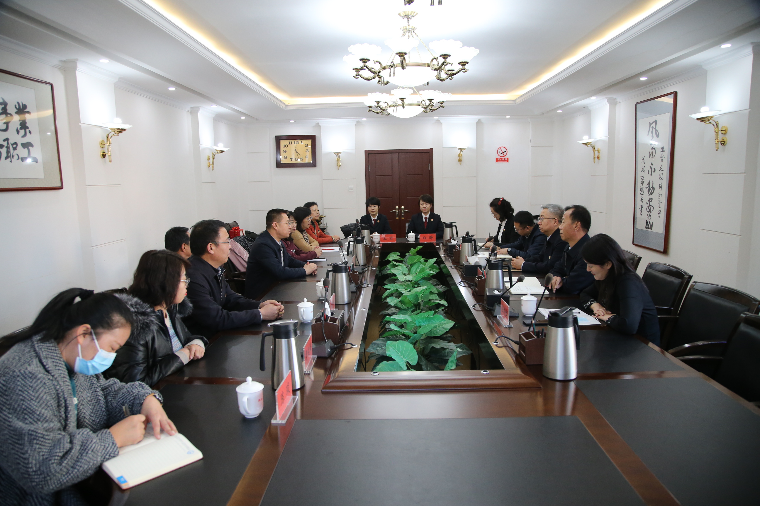 近日,为深化双方交流合作,推动工会事业和检察事业共同发展,呼和浩特市人民检察院党组书记、检察长张忠明带领班子成员及今年新评选出的全国先进工作者白静、呼和浩特市先进工作者王君对呼和浩特市总工会进行了集体走访,并就相关工作情况进行了交流。市总工会党组书记、副主席汪俊亭,市总工会党组成员、副主席冀罕钢一行出席座谈活动。