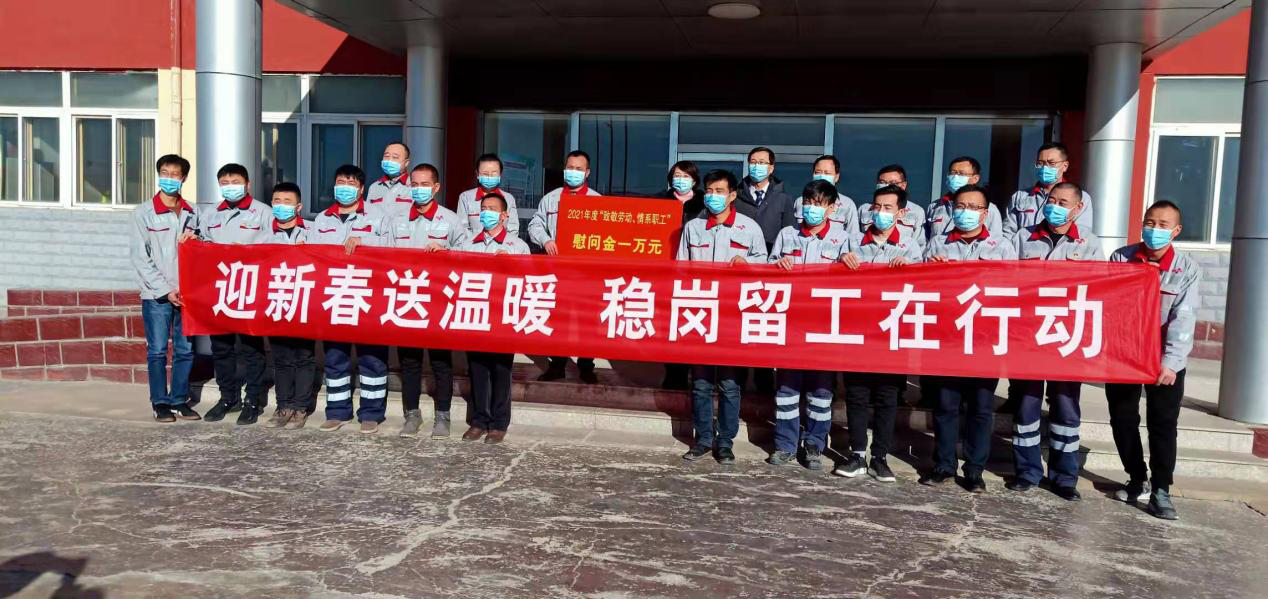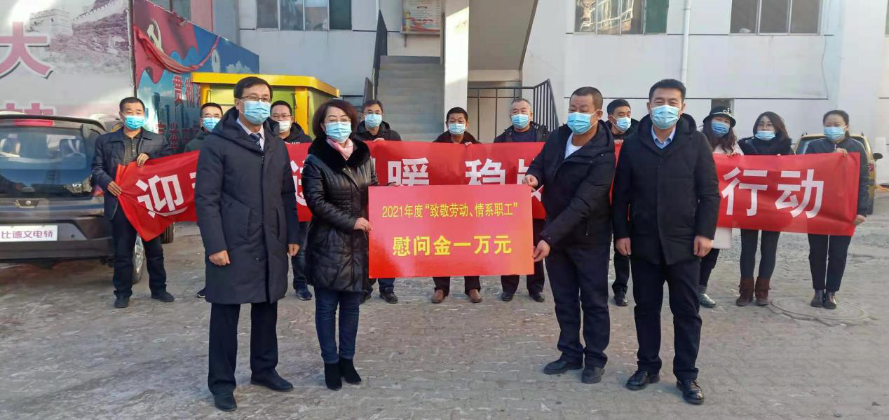 2021年春节即将来临之际,在武川县副县长李迎春的带领下,县总工会主席张显业、政府办副主任张海勇等来困难企业开展送温暖活动,看望慰问困难企业的一线职工和就地过年的农民工等重点群体,向他们送去关怀和新年祝福。