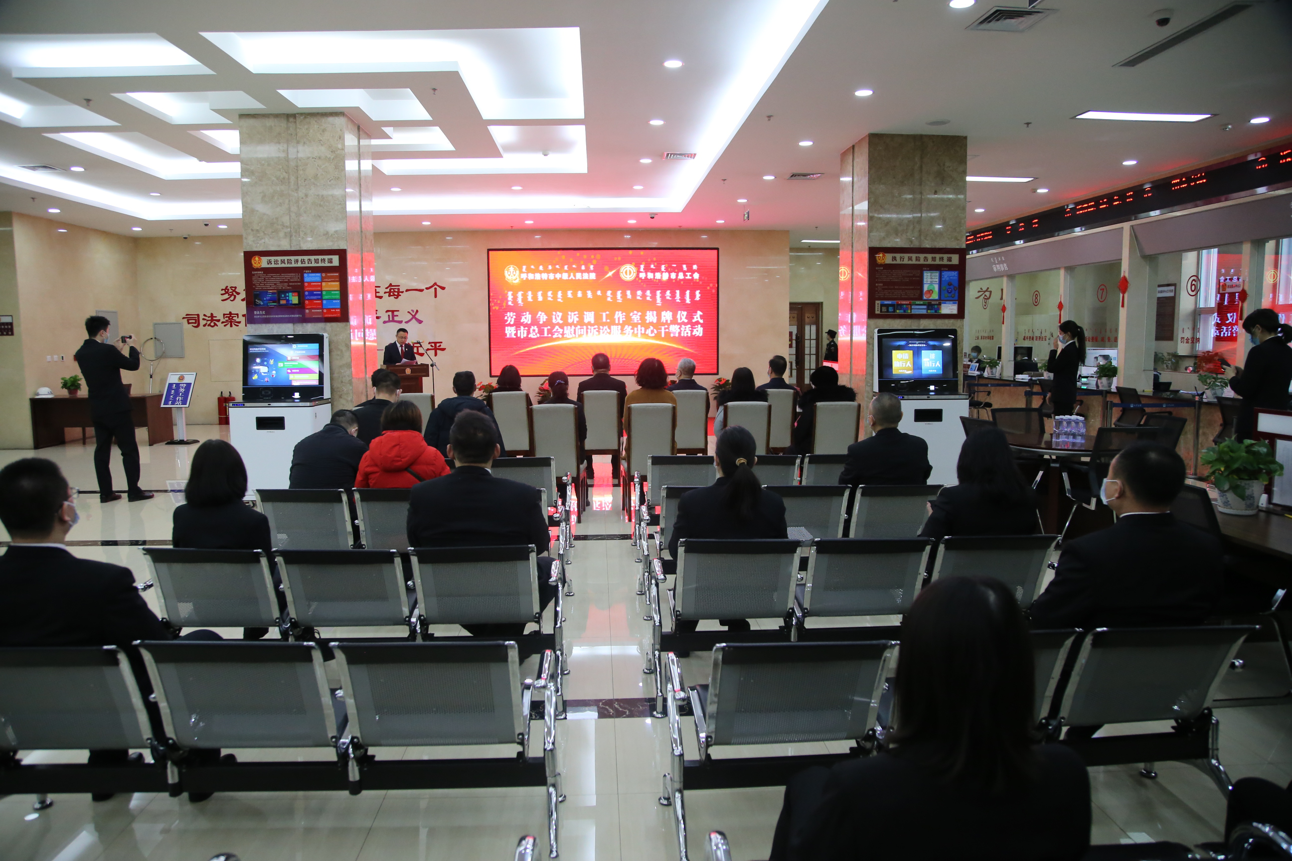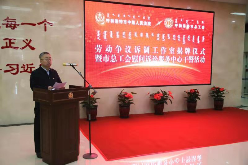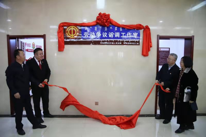 2月3日上午,呼市“法院+工会”劳动争议诉调工作室揭牌仪式在呼市中级人民法院举行。自治区高级人民法院立案庭庭长梁宏,市中院党组书记院长赵希民,市总工会党组书记、副主席汪俊亭,市中院党组副书记、副院长宋建波,市总工会党组成员、副主席冀罕钢,市中院审委会专职委员周臻,市中院立案一庭庭长杜子洋,市总工会法工部部长任剑平,市机关文教卫生工会负责人包静等出席了启动仪式并参观了中院诉讼服务中心,详细了解了“诉调对接”调解机构工作机制及办案流程。