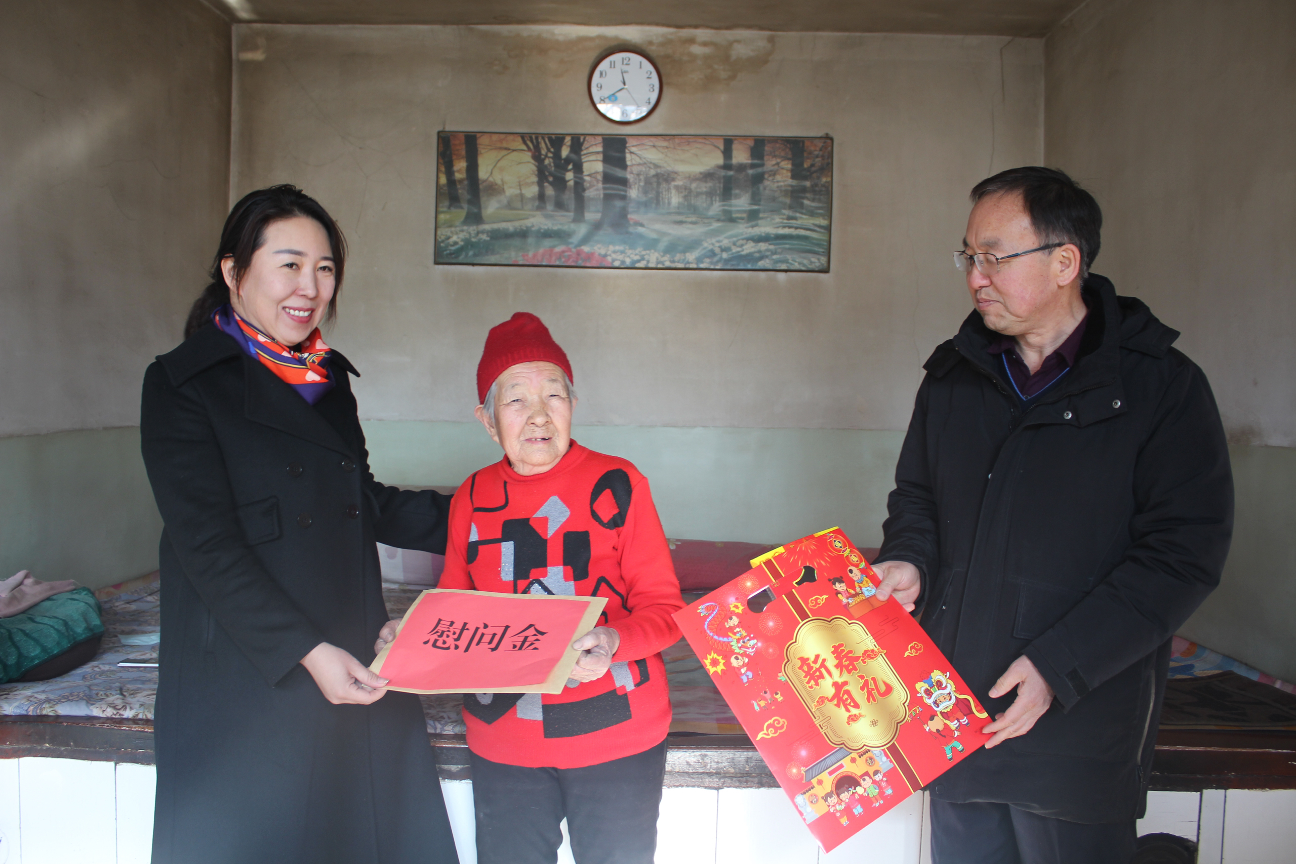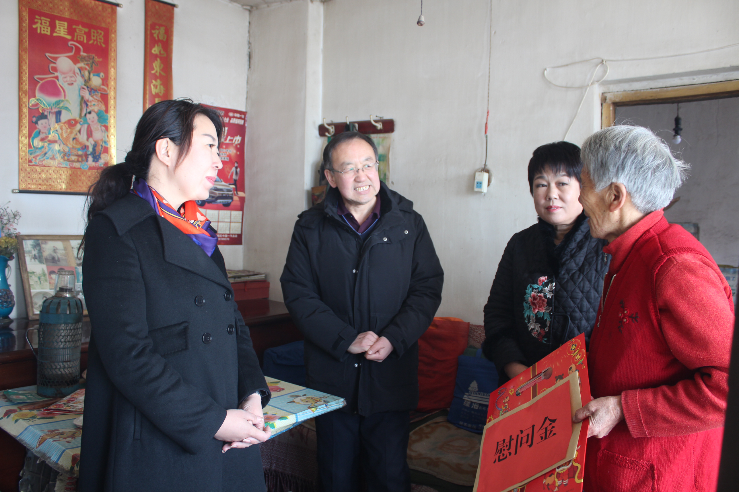 慰问组先后慰问了劳模代表王秀恩、李月珍和困难职工代表于利波、闫玉娥。每到一处,慰问组都和他们亲切交谈,拉家常、问冷暖,详细询问他们的工作生活情况和身体健康状况,并送上了年味春联福字大礼包、1000元慰问金和新春的问候。