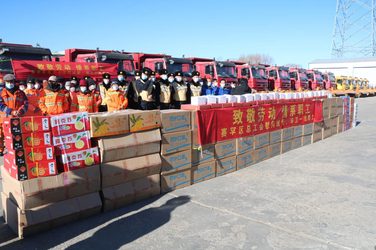 2月3日上午,呼和浩特市赛罕区委书记付金在,区委副书记、政府代区长程重重等区四大班子领导及总工会相关负责同志来到赛罕区环卫综合作业中心,为城管、环卫一线职工送去了党和政府的关爱及工会“娘家人”的温暖,为职工们送去了在外作业专用口罩、保暖裤、水果、方便面、牛奶等慰问品,让他们温暖过春节。