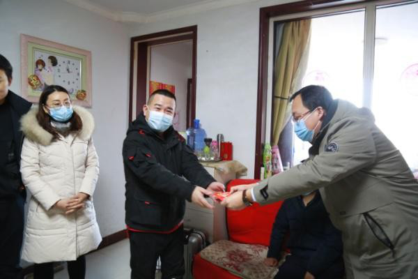 春节将至,岁寒情深。在新春佳节即将来临之际,为确保呼和浩特市华春园林工程有限责任公司每一位职工都能度过一个温暖祥和的春节, 2月 4 日上午,由呼和浩特市华春园林工程有限责任公司工会组织,公司党支部副书记、副总经理、工会主席赵永利、副总经理赵永强带队看望慰问了柴 泽宏和彭俊生两位困难职工,代表公司送去了慰问金和慰问品,也送去了公司真挚的关怀和节日的问候。