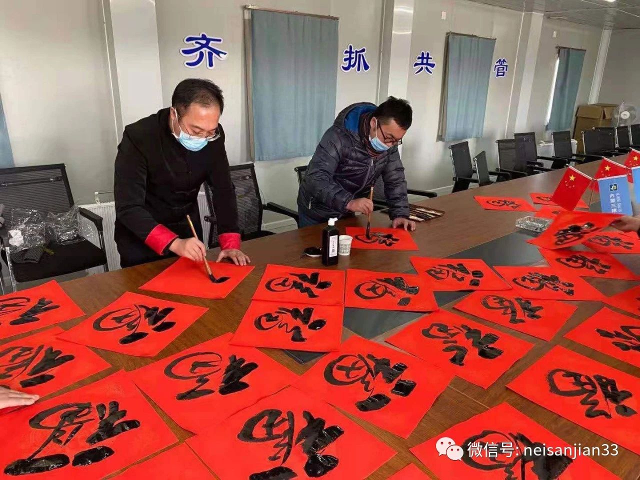 随后慰问组为工人发放了慰问品大礼包、电影券,并邀请书法老师们现场为工人们写下的“福”字,为大家营造别样的新春氛围。
