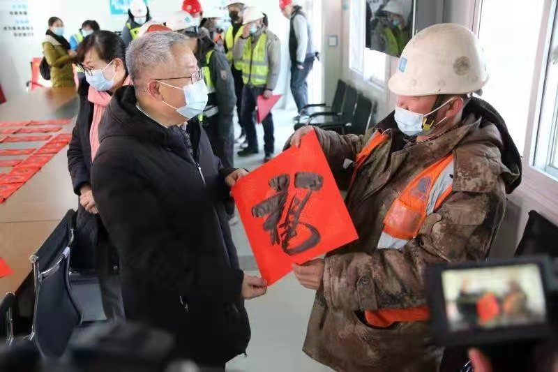 慰问组先后来到内蒙古革命历史博物馆项目工地、内蒙古九州通药业公司、恒大文化旅游城项目工地,现场为工友们写春联、送祝福、发放电影票、年味礼包等。每到一处,慰问组都与职工面对面谈心,详细了解就地过年职工的具体情况,对就地过年职工响应倡议的行为表示感谢,同时,要求各企业兼顾做好疫情防控与安全生产工作,保障职工的合法权益,结合关心关爱职工活动,为就地过年职工安排形式多样的文化娱乐活动,让就地过年的职工过一个温暖、欢乐、祥和的春节。