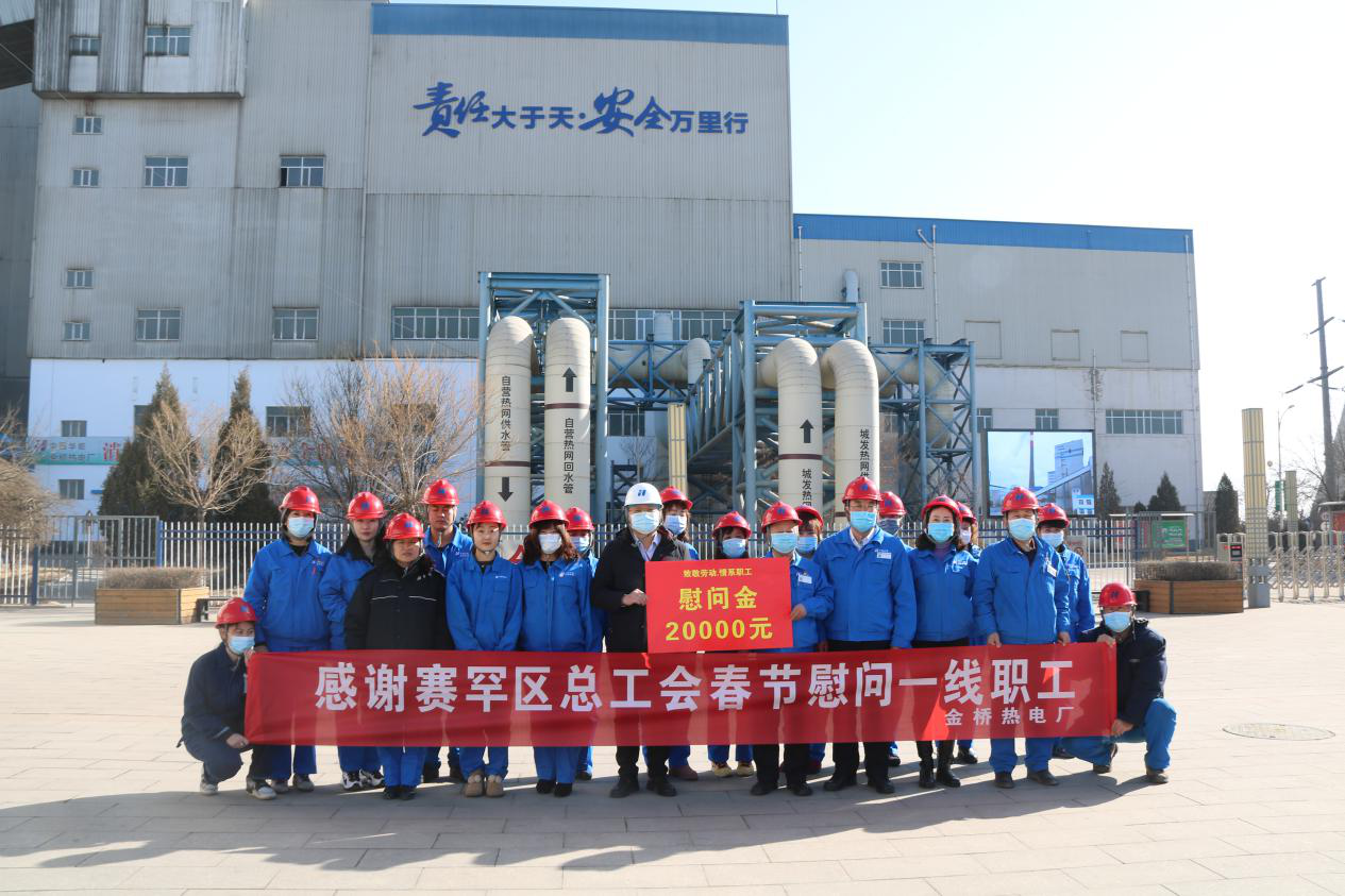 2月9日,呼和浩特市赛罕区总工会挂职副主席赵致晖一行来到北方联合电力金桥热电厂开展“致敬劳动 情系职工”送温暖慰问活动,为春节期间仍然坚守岗位的一线电厂职工送去“娘家人”的温暖关怀和新春祝福,让他们温暖过春节!