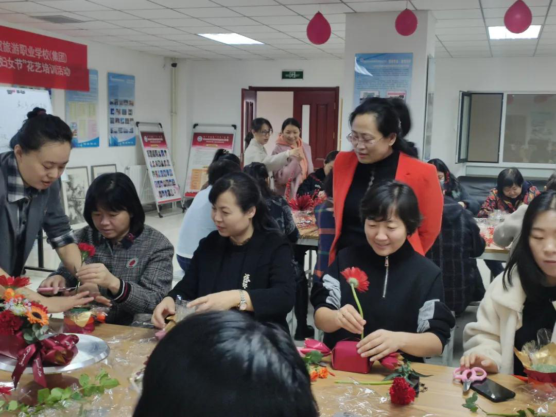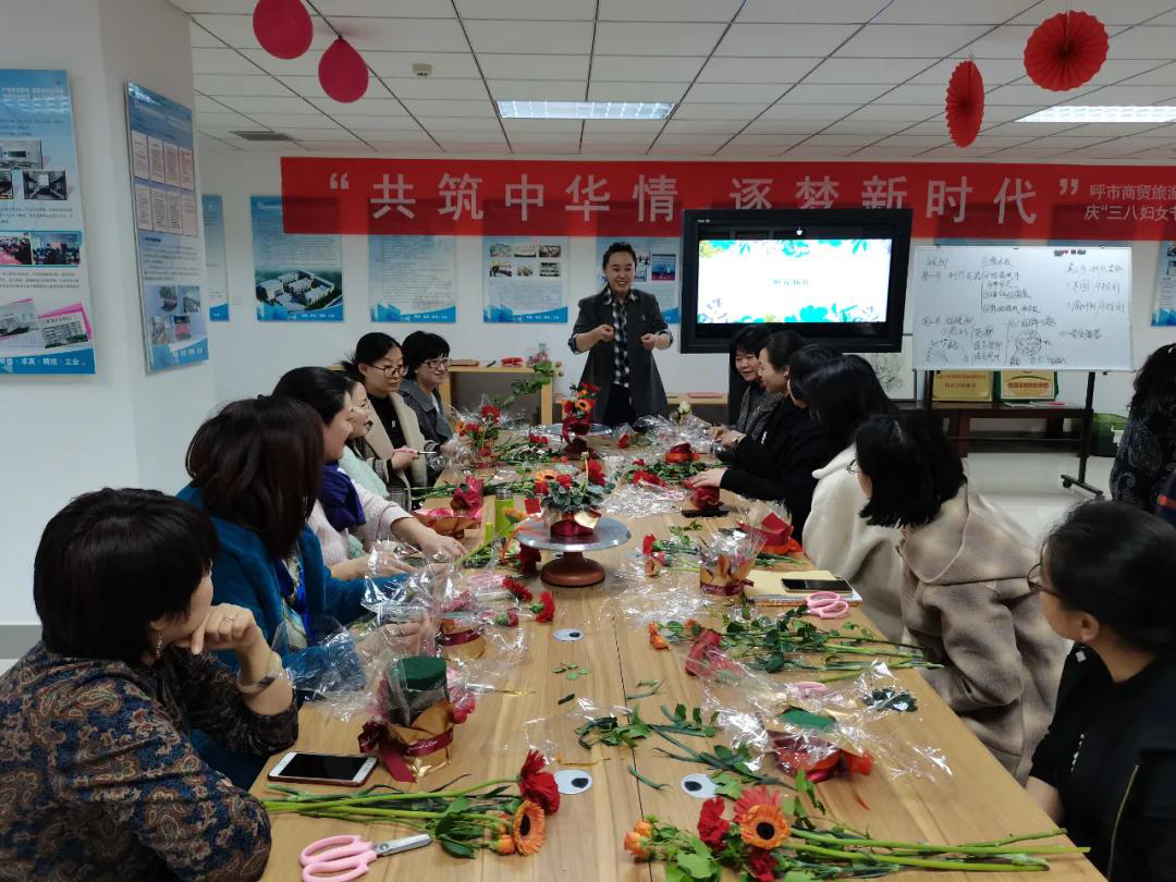 芬芳自在,笑靥如花。为热烈庆祝第111个“三八”国际劳动妇女节,为增添节日的喜庆与欢乐,为了给每一位辛勤耕耘、无私奉献的女教师送上学校最深切的关怀与祝福,2021年3月8日呼和浩特市商贸旅游职业学校举办“共铸中华情、逐梦新时代”庆祝“三八”国际劳动妇女节主题花艺培训活动。
