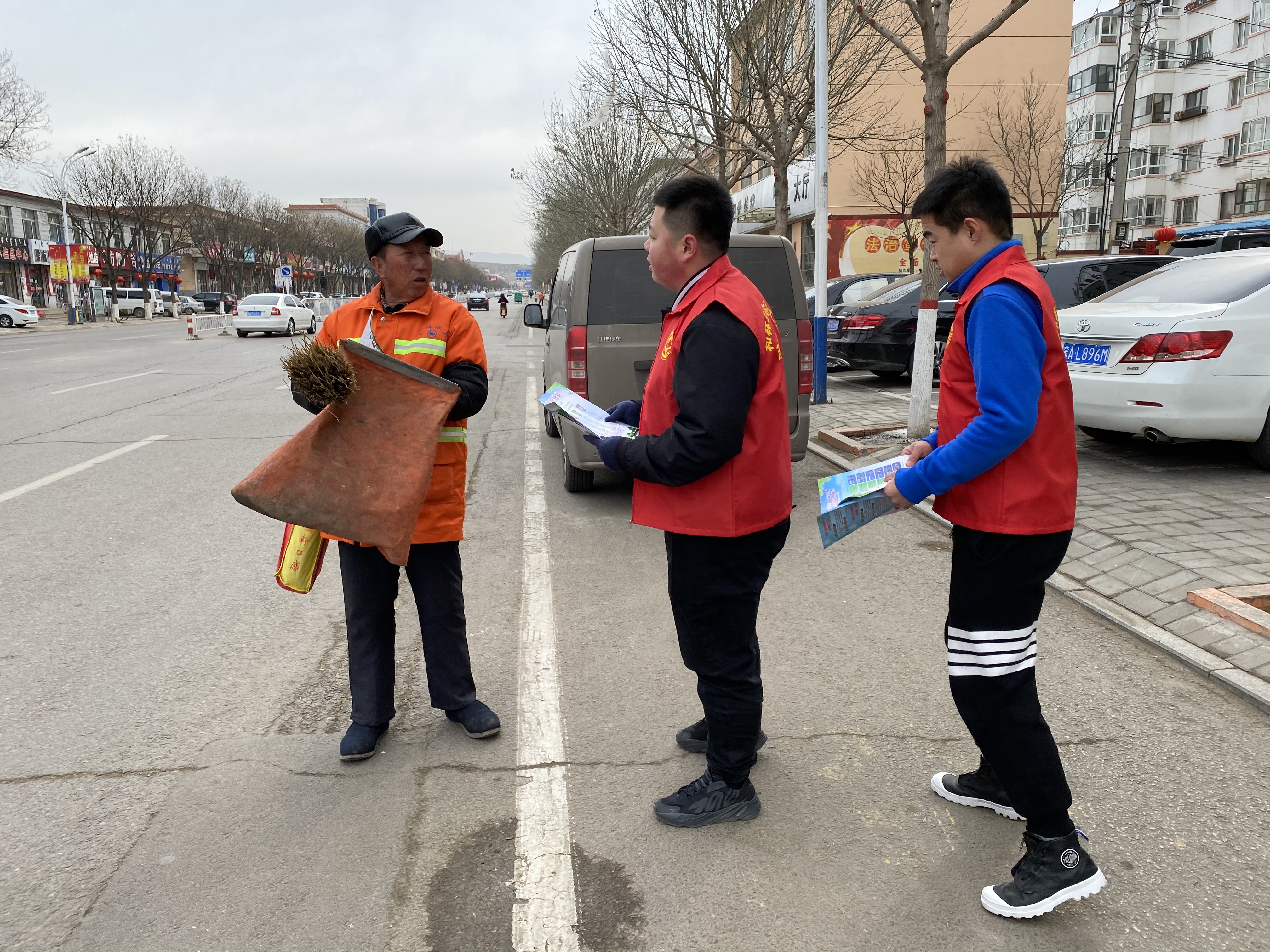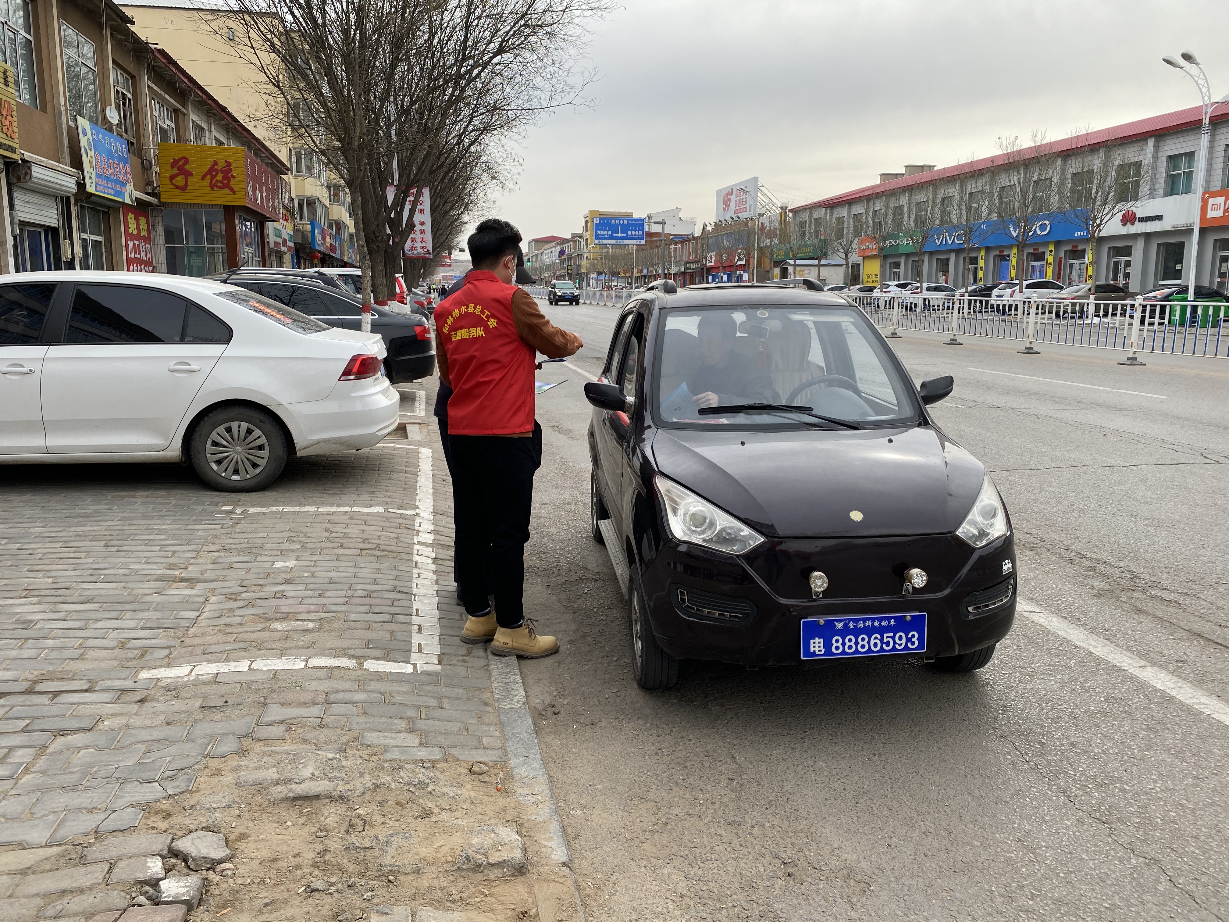 和林格尔县总工会组织单位志愿者在监理站、力源商厦、文体局等路口配合交通警察引导行人和车辆文明出行,帮助有需要的群众。通过发放宣传材料的方式,向广大群众宣传普及创建文明城市相关知识。