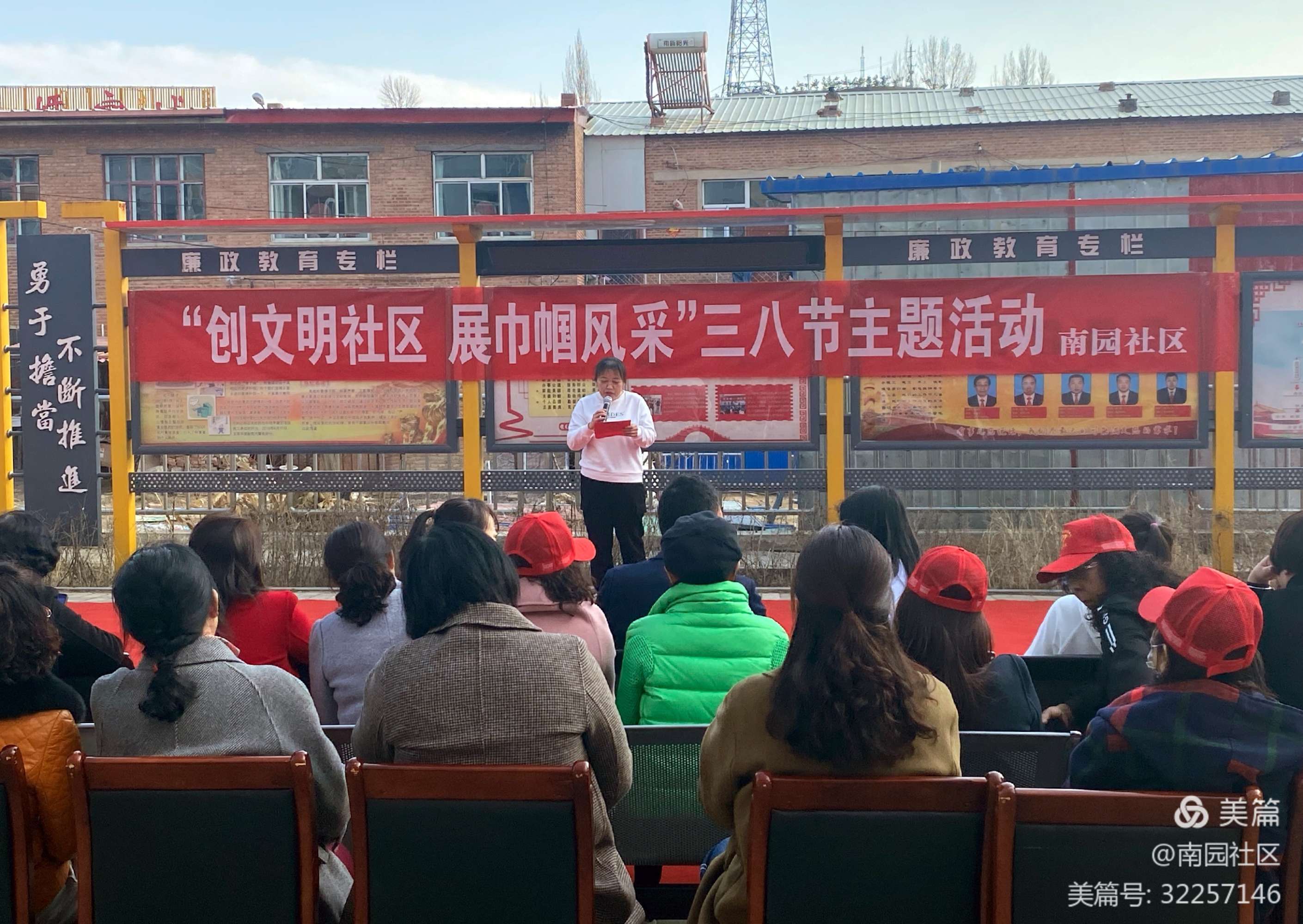 阳春三月,春风和煦。南园社区广场流光溢彩、花香四溢,我们迎来了第111个“三八”国际劳动妇女节。为丰富新时代广大妇女同志们的文化生活,3月8日,南园社区工会组织开展了“创文明社区,展巾帼风采”三八节主题活动。城关镇党委副书记、工会主席师海杰等出席活动。社区工作人员、小红帽志愿服务者、辖区妇女积极参与。