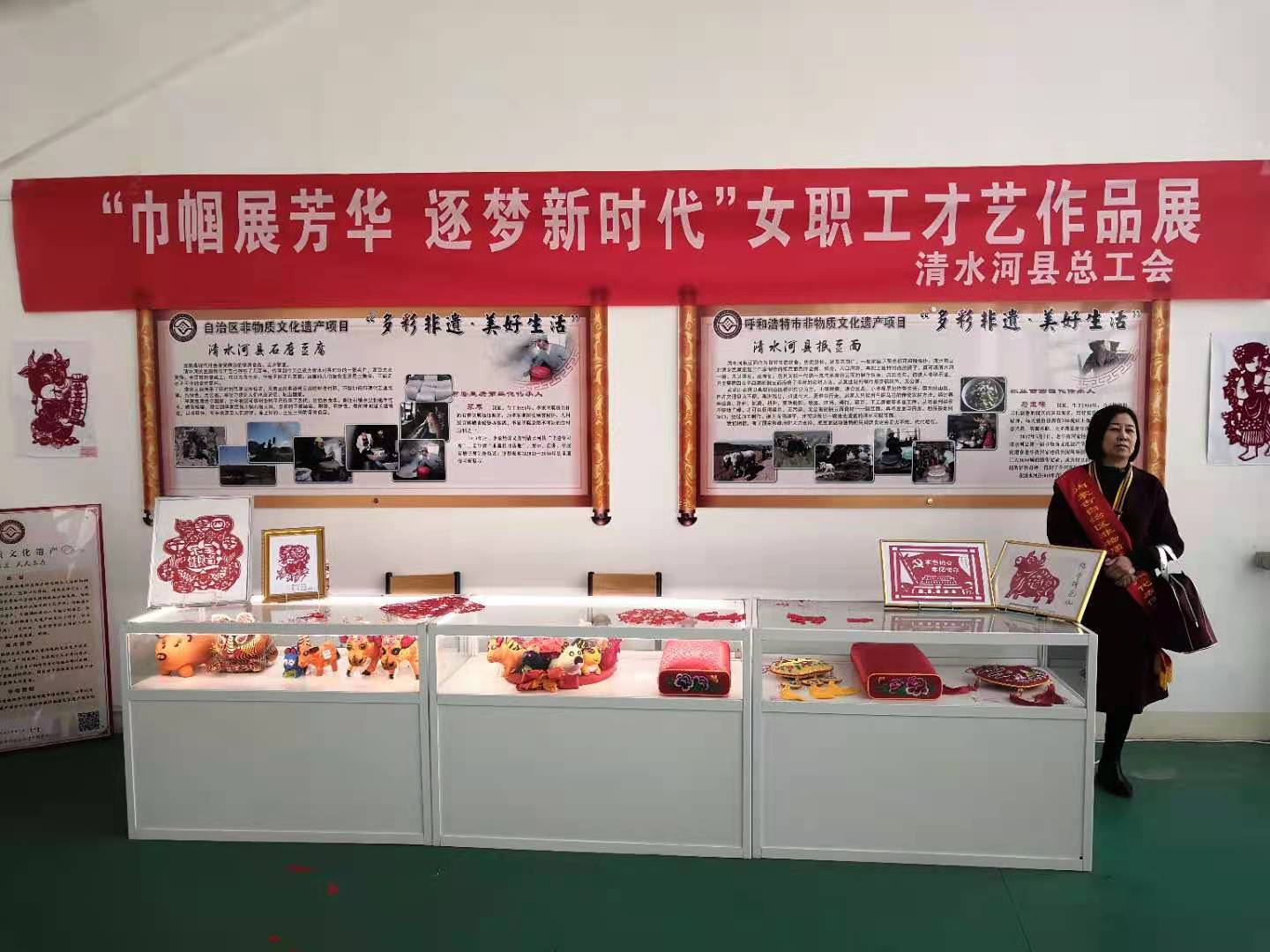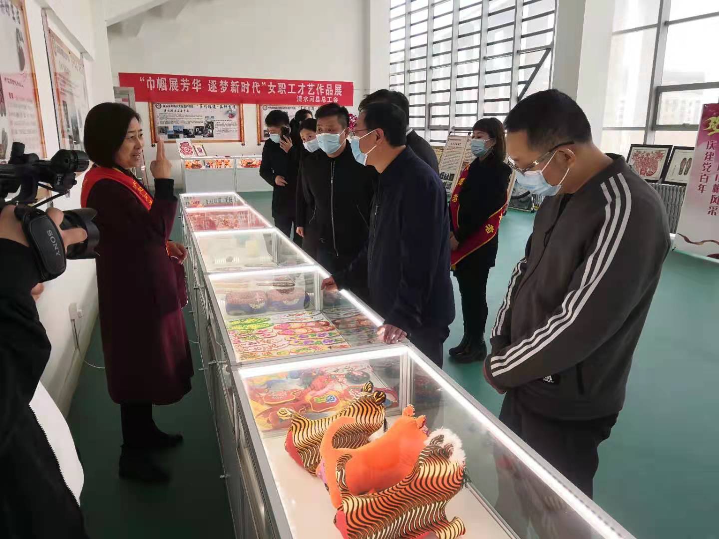 3月8日上午,清水河县总工会在县文化馆开展“巾帼展芳华、逐梦新时代”女职工综合才艺展活动。来自全县各行各业70名女职工的118幅剪纸、布艺、陶艺、书画等作品参加展览。