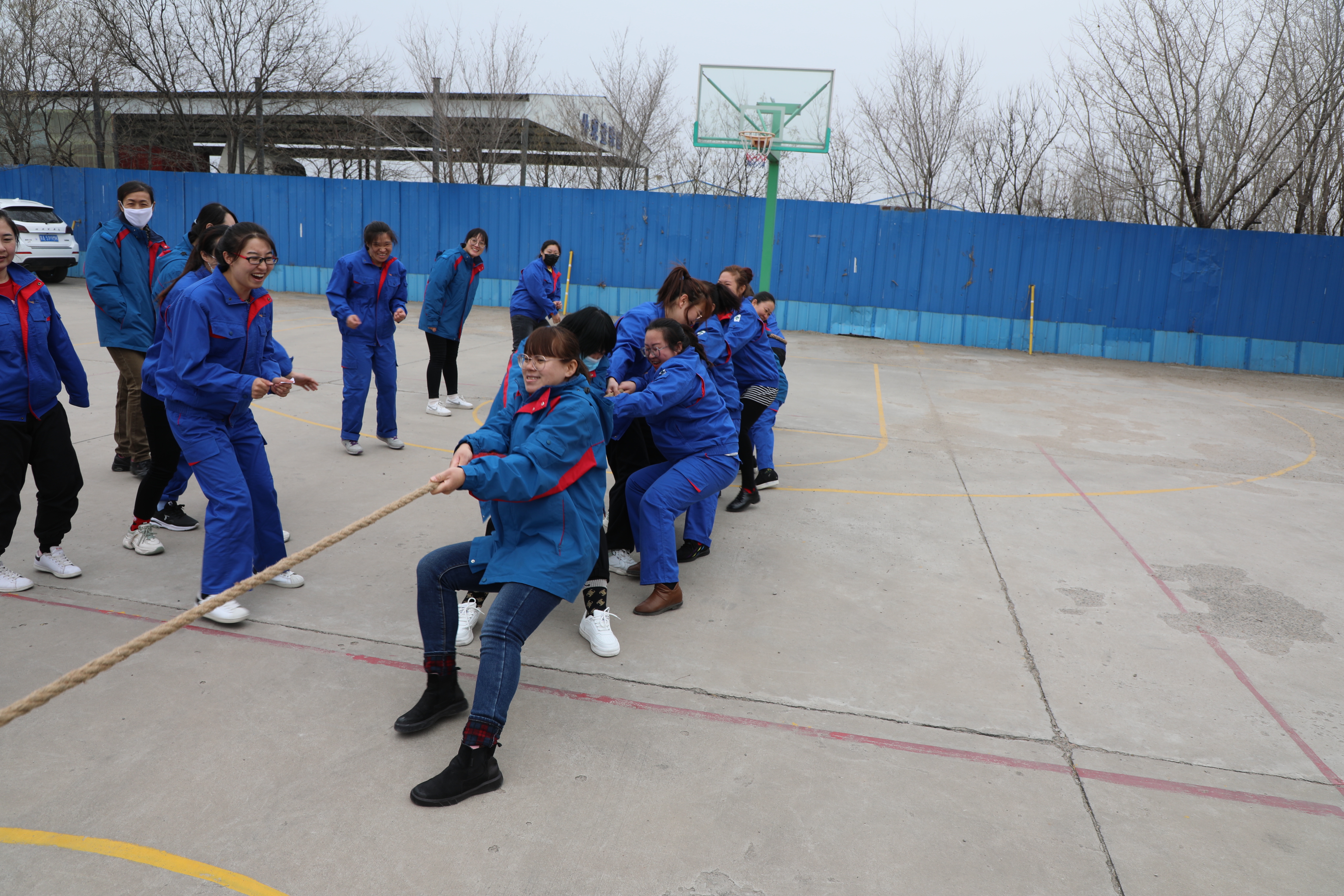 女工走出岗位,来到户外以“跳绳接力”“夹球接力”“拔河比赛”“集体跳绳”等活动喜迎自己的节日。活动现场,欢声笑语,气氛活跃热闹。展现了新时代女性的积极乐观、勇往直前的精神。
