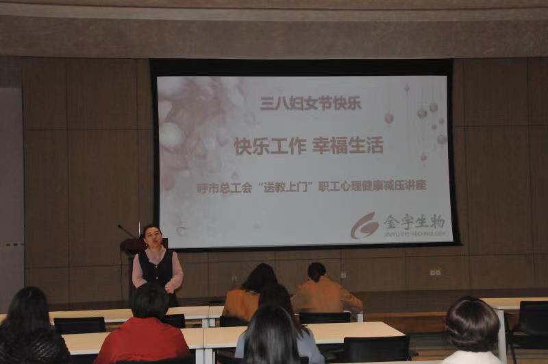 3月8日,呼市总工会特聘健康咨询专家王婷婷在金宇公司食堂二楼会议室做了一场职工心理健康减压讲座,同时国家二级心理咨询师郝淑玲和赫琳老师做心理咨询服务,来自金宇公司车间和各部门的女员工们和部分男员工聆听了讲座,集团工会主席张占福和保灵工会于春华参加了这此活动。