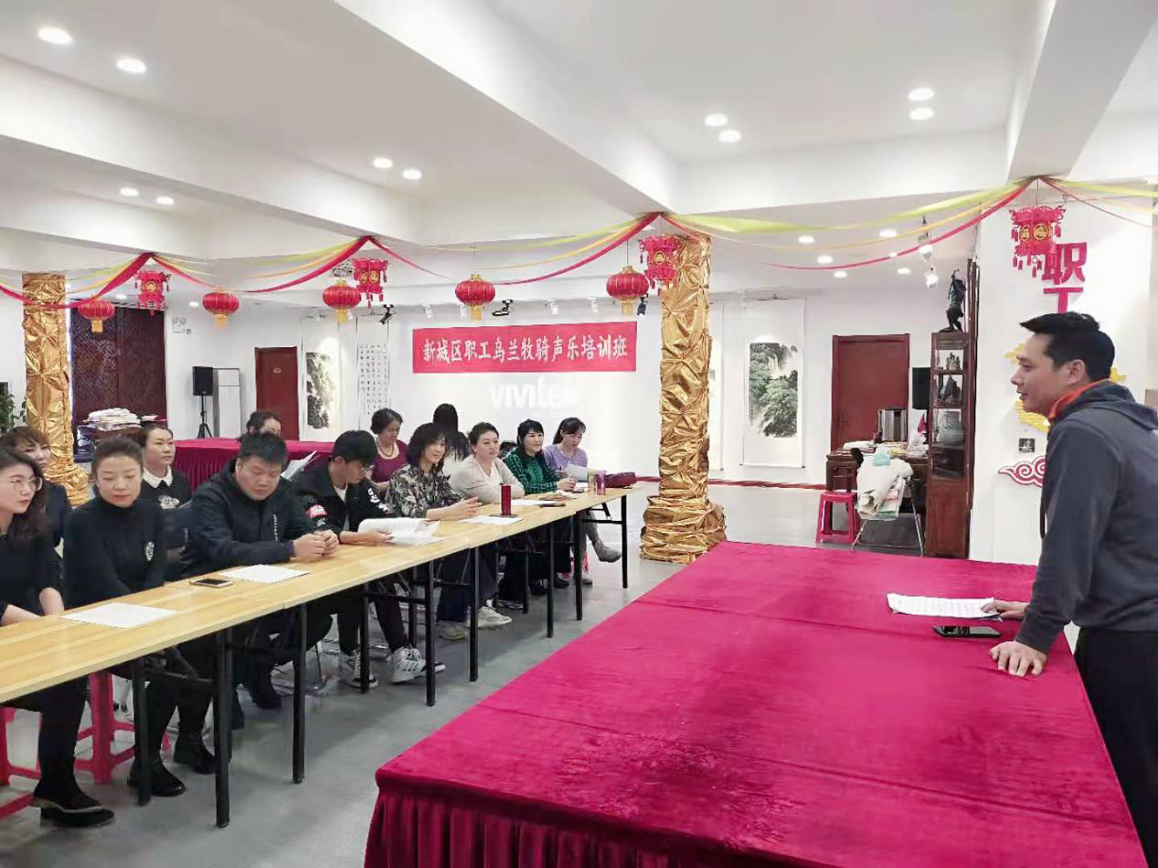为贯彻落实习近平总书记十九大报告中提出的“要深入挖掘中华优秀传统文化蕴含的思想观念人文精神,道德规范”,结合时代要求,继承创新,让中华文化展现出永久魅力和时代风采的讲话精神,进一步提升我区音乐爱好者的艺术水平,丰富我区职工群众文化业余生活,新城区总工会、区职工乌兰牧骑于3月12日举办职工声乐培训。新城区总工会副主席、区职工乌兰牧骑团长刘彩虹参加了此次活动。