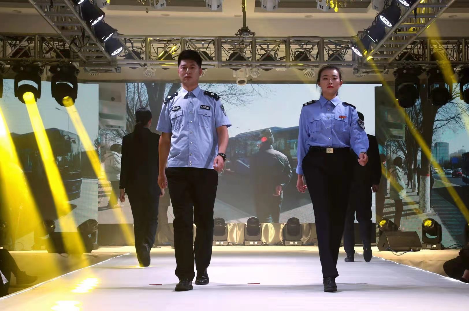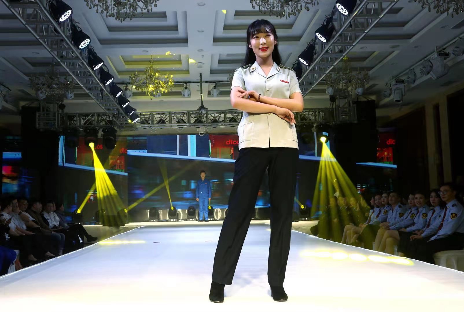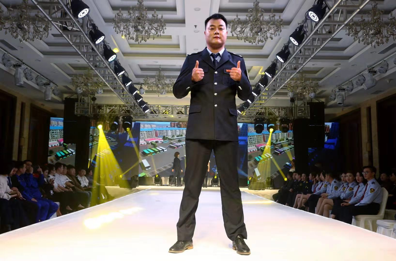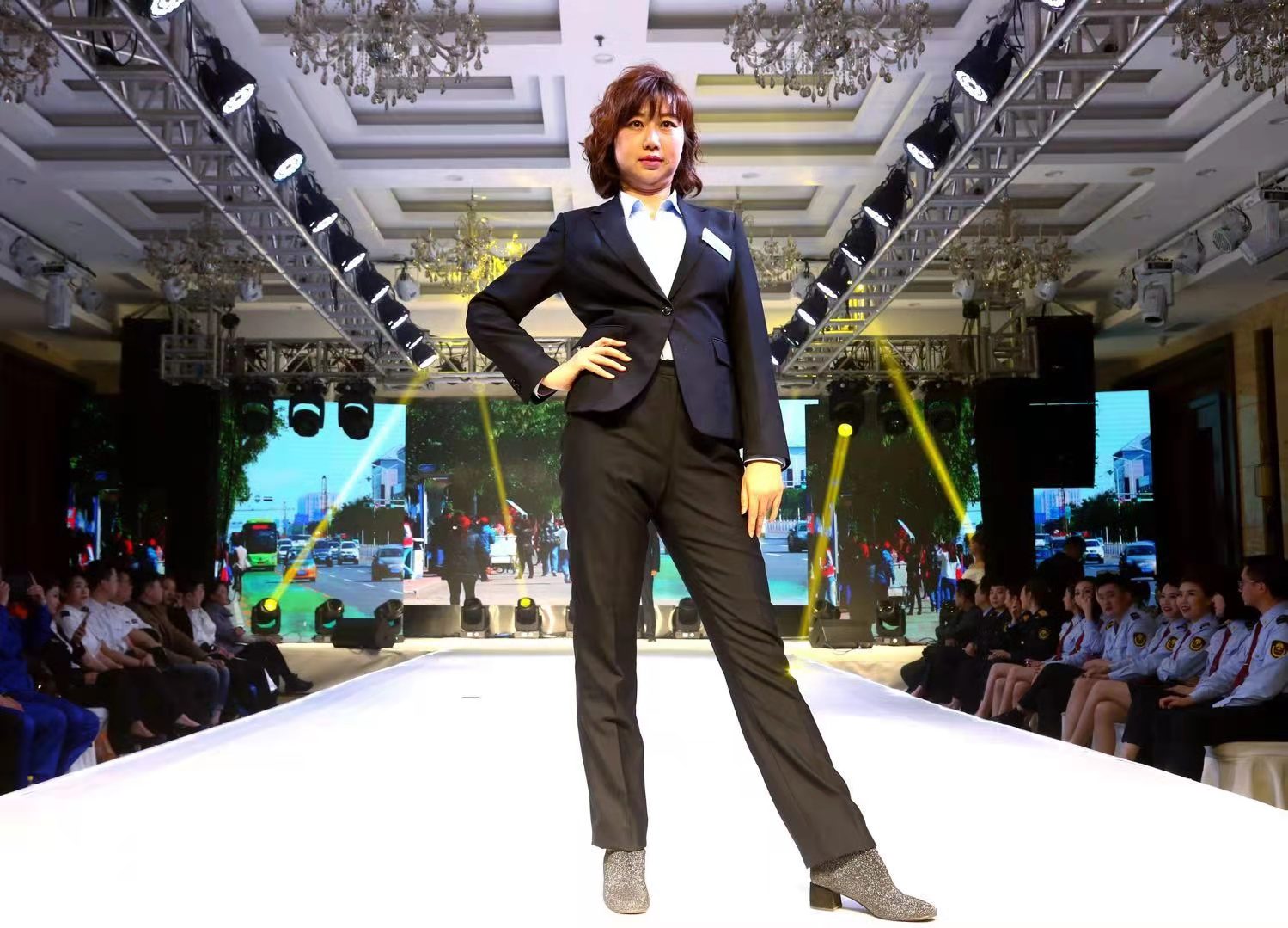 我公司12名职工以不同的岗位不同的工装展示出的都是同样一颗服务好乘客的心,一张张笑脸,在T台上展示了公交人爱岗敬业、积极向上的自信与追求。 (王娟)