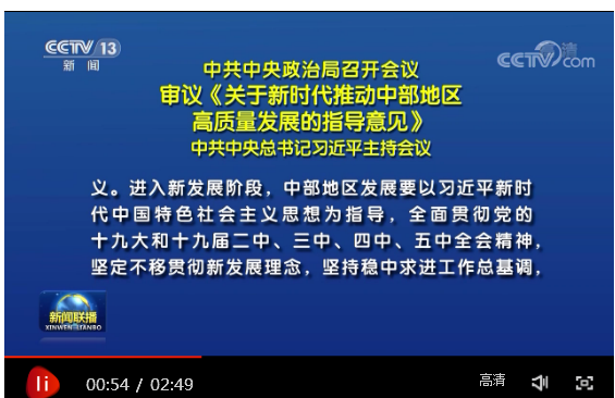 中共中央政治局召开会议 审议《关于新时代推动中部地区高质量发展的指导意见》 中共中央总书记习近平主持会议