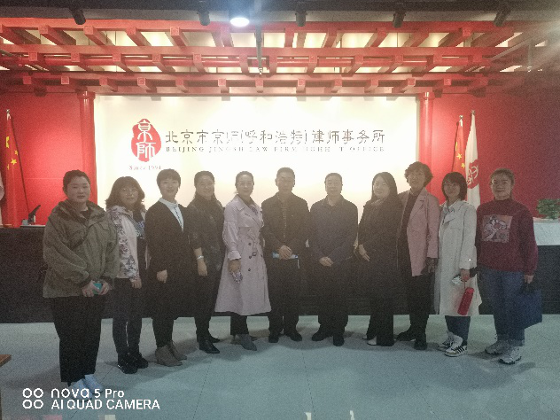 调研组一行首先来到京师律师事务所,工会主席孙雷带领参观了党工共建文化墙、职工之家,书屋建设等阵地,并在古风质朴的职工茶憩室进行了座谈。大家畅谈了建设楼宇工会联合会的设想和工作思路,王佳慧对于打造楼宇工会联合会的提出指导意见,任剑平对律所更好地服务社会提出了中肯建议。