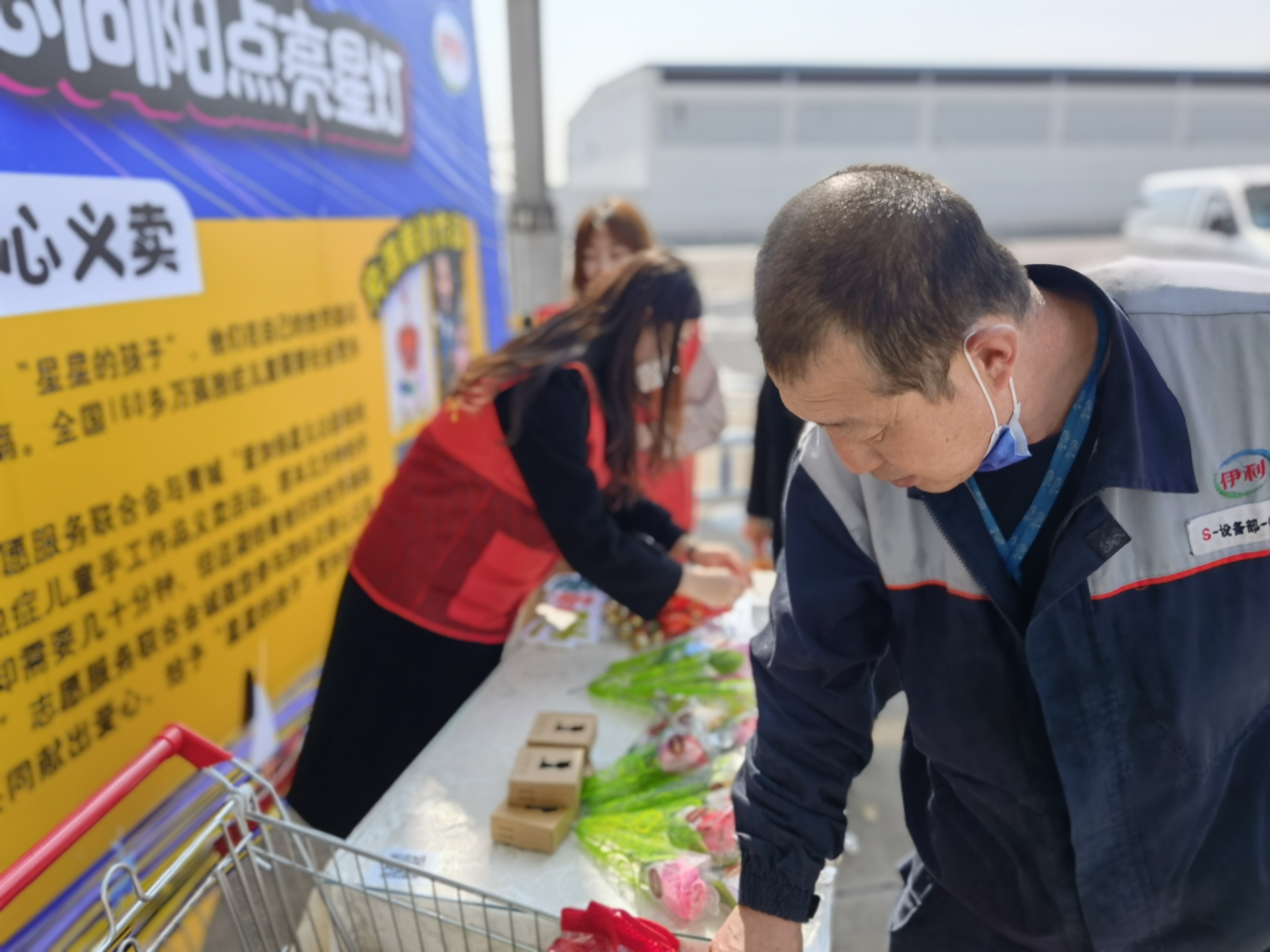 在伊利集团团委的指导下,金山乳业工会组织“伊心向阳”志愿服务队开展了“伊心向阳点亮星灯”主题活动,活动通过义卖自闭症儿童的手工艺品筹集善款。义卖活动结束后,“伊心向阳”志愿服务联合会携善款及伊利牛奶前往爱加倍星儿公益助残中心开展慰问活动。金山伊利的一名志愿者说:“我觉得参与这次活动非常有意义,希望有机会可以带自己的孩子去看看这些自闭症孩子们,陪他们一起做游戏,给他们带去温暖与关心。”