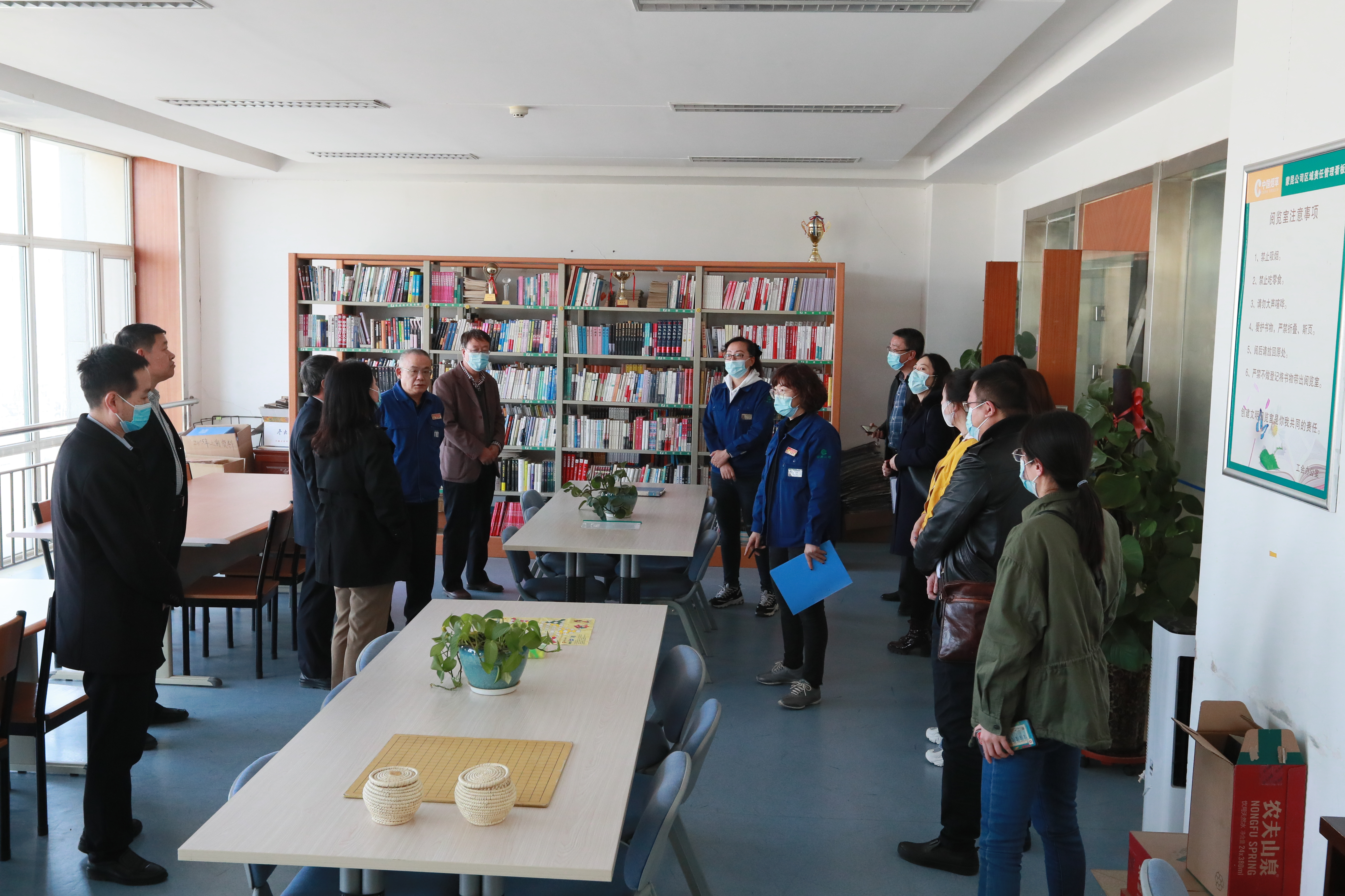 王佳慧等一行人首先参观了“职工书屋”,书屋管理人员介绍了“职工书屋”发展情况、管理模式和现有藏书的数量及书目情况,并重点介绍了“职工书屋”下一步的升级改造、信息化管理和电子图书的借阅。接着一行人员参观了“职工创新工作室”。曹瑞辉介绍了近几年蒙昆公司创新工作室的发展历程和历年创新取得的重大成绩。其中产品研发中心、生产制造部创新工作室带头人和成员详细介绍了创新工作室运行情况、创新成果及取得的荣誉。随后大家到“妈咪小屋”进行参观,蒙昆公司女工委员对妈咪小屋的使用情况及增设和筹备工作进行了介绍。最后,观摩人员到 “职工活动中心”进行了现场调研,职工活动中心管理员对“职工活动中心”的建设及试运行期间开展的活动进行了介绍,并对公司已有协会开展的文体活动进行了讲解。