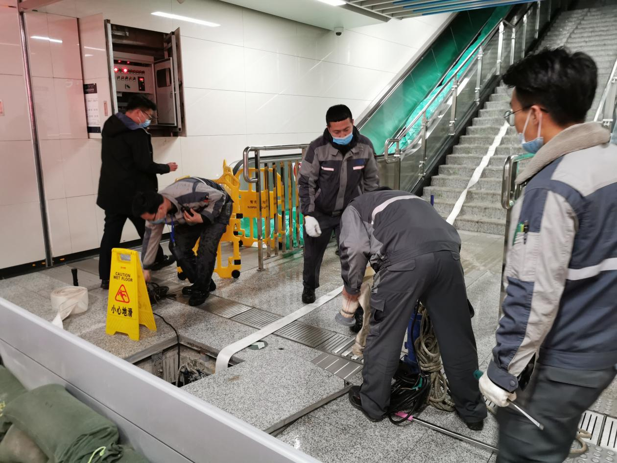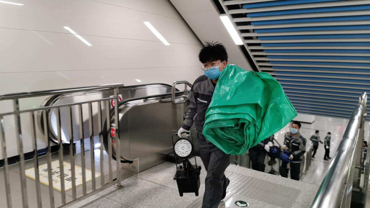 4月13日22时,地铁运营公司机电中心联合客运中心在呼和浩特东站A口开展防汛应急演练。