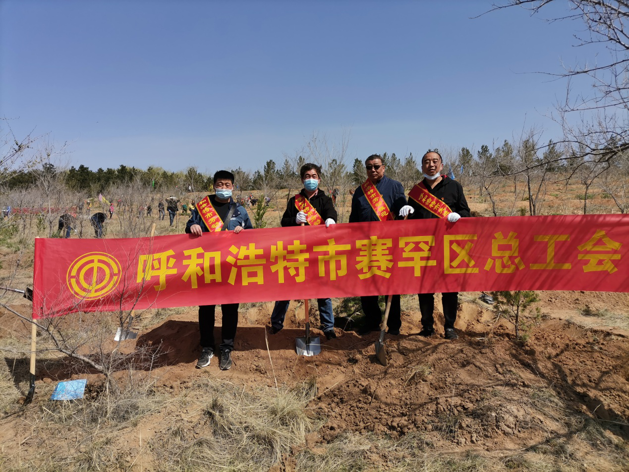 4月20日,赛罕区总工会组织我区劳动模范前往和林格尔县南山公园,参加由市总工会组织的劳动模范义务植树活动。