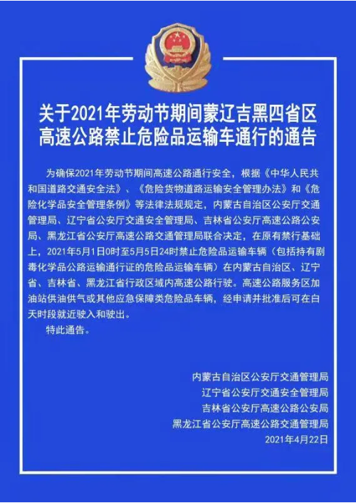 禁止危险品运输车通行的通告