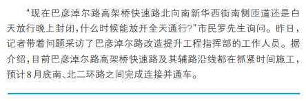 巴彦淖尔路改造提升工程指挥部的工作人员告诉记者,巴彦淖尔路公铁立交桥段的高架桥快速路和下穿铁路线的辅路恢复道路工作早已开始,但是因为都涉及在铁路线施工,每天晚上只有3个小时左右的窗口期可以施工,所以进度比较慢。目前,除了巴彦淖尔路公铁立交桥段,巴彦淖尔路高架桥快速路南二环段至北二环段高架桥上的道路已经全部完成路面铺设,施划了交通标志标线,安装了路灯,施工方每天晚上都在抓紧时间施工,预计8月底前可以通车。