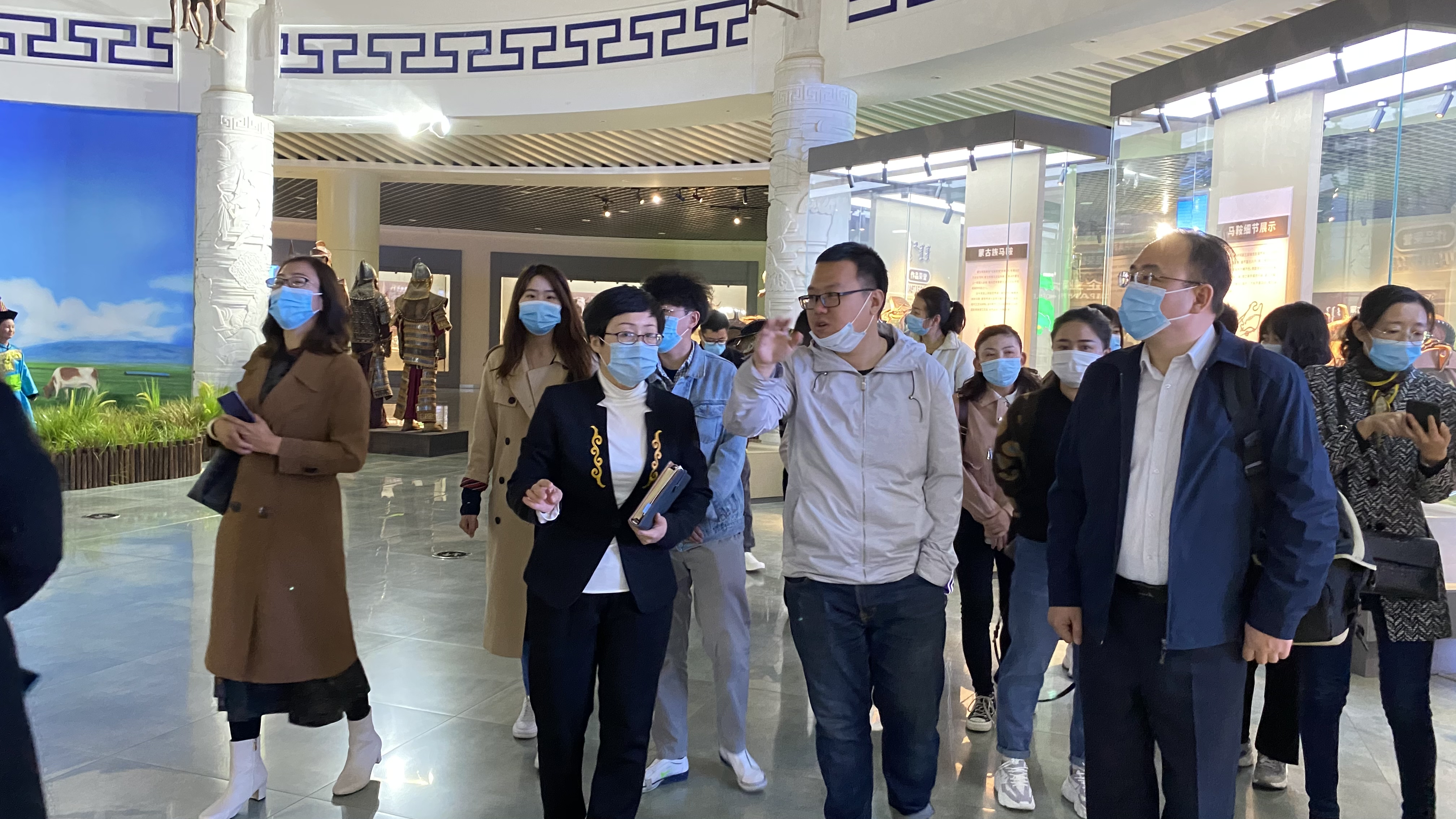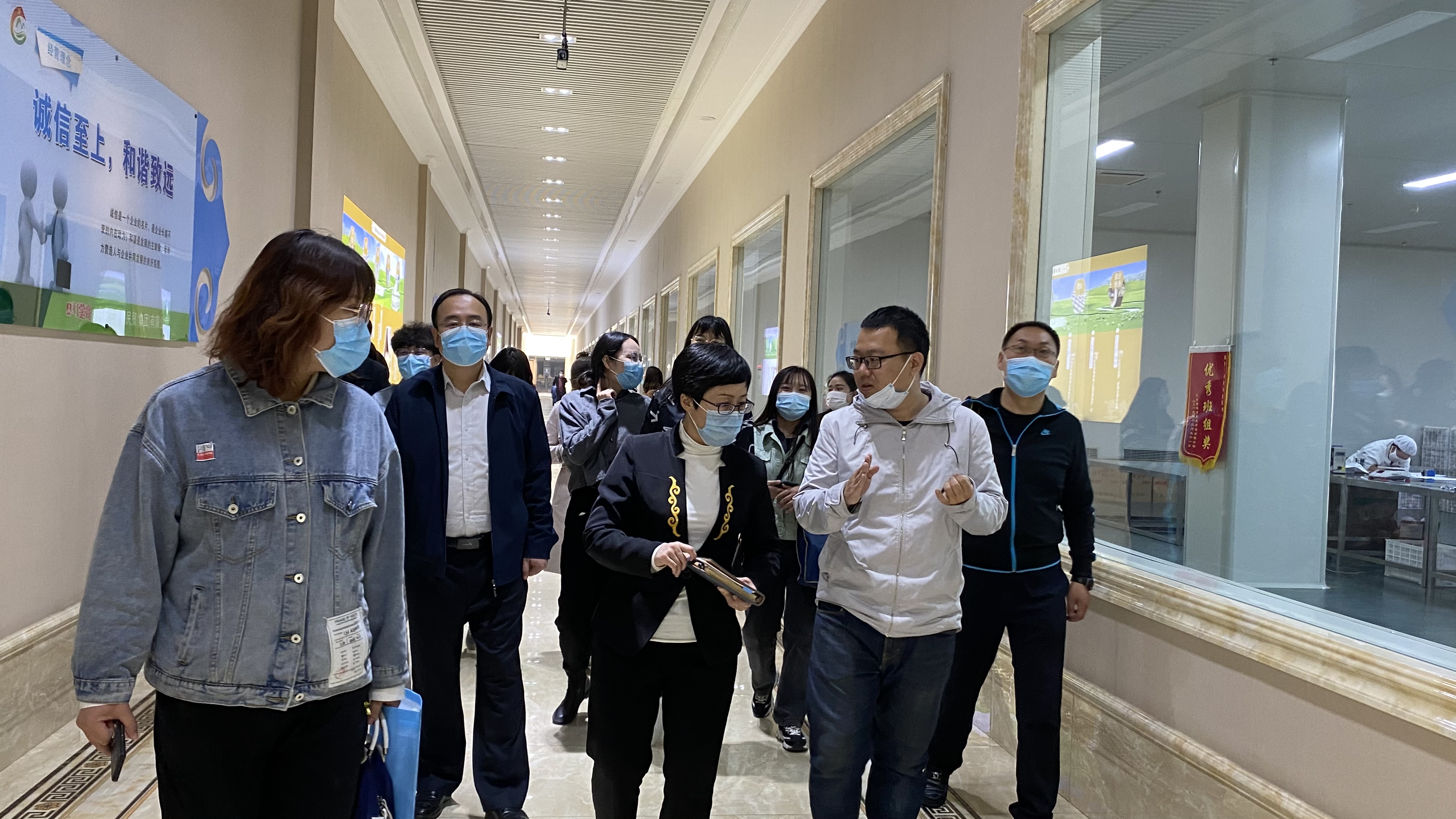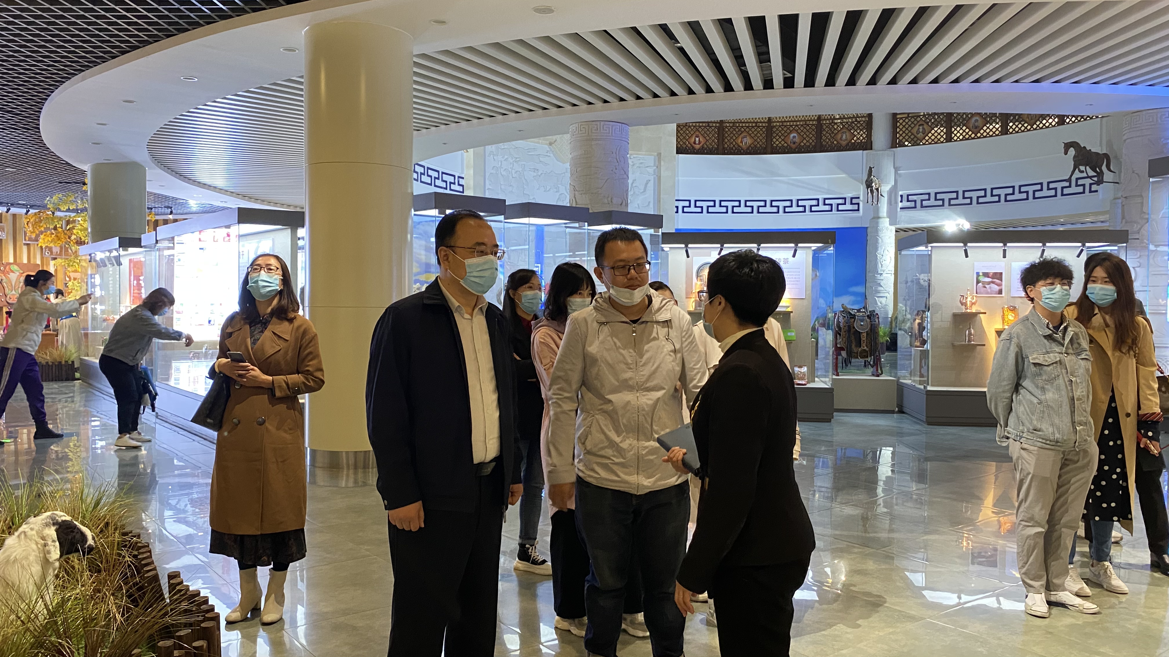 调研组一行在攸攸板镇工会联合会张家荣、内蒙古蒙亮民贸(集团)有限公司黄燕华陪同下参观了蒙亮公司的民族文化特色展厅、民族工艺品展厅、职工创新工作室及职工文化活动阵地,了解了企业发展现状、职工工作生活情况、工会工作开展情况等基本信息。