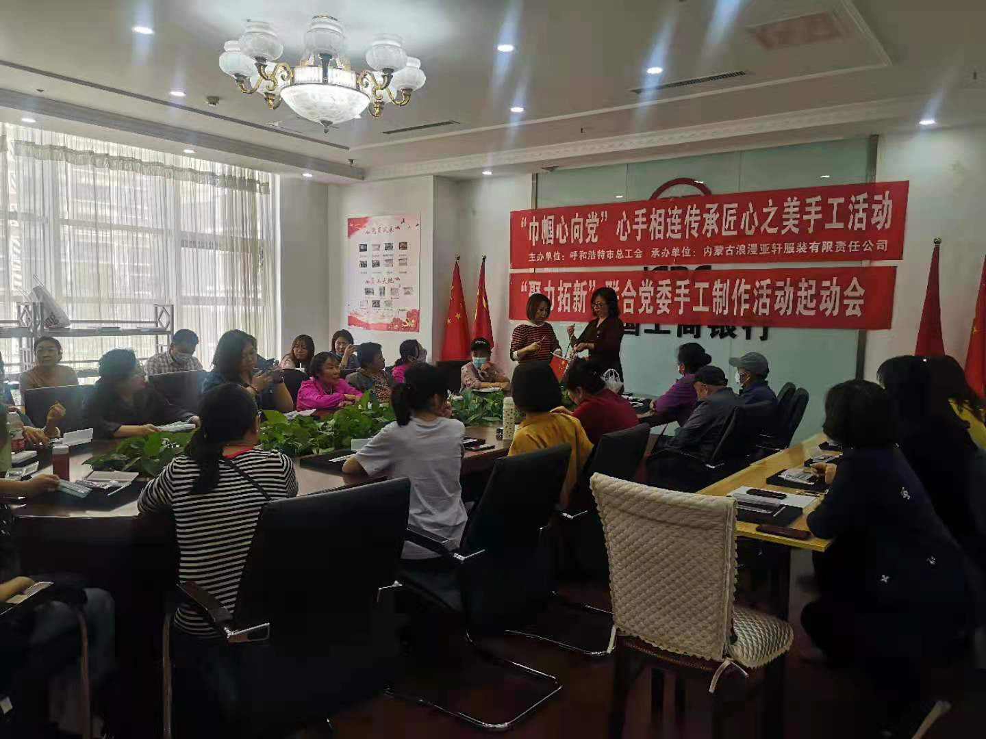 为帮助更多女职工提升职业素质和技能水平,增强幸福感、获得感,力争当好职工的贴心“娘家人”,5月12日,由呼市总工会主办,内蒙古浪漫雅轩服装有限责任公司承办的“巾帼心向党”心手相连传承匠心之美手工活动在新城区锡林北路街道电厂前街社区开展。