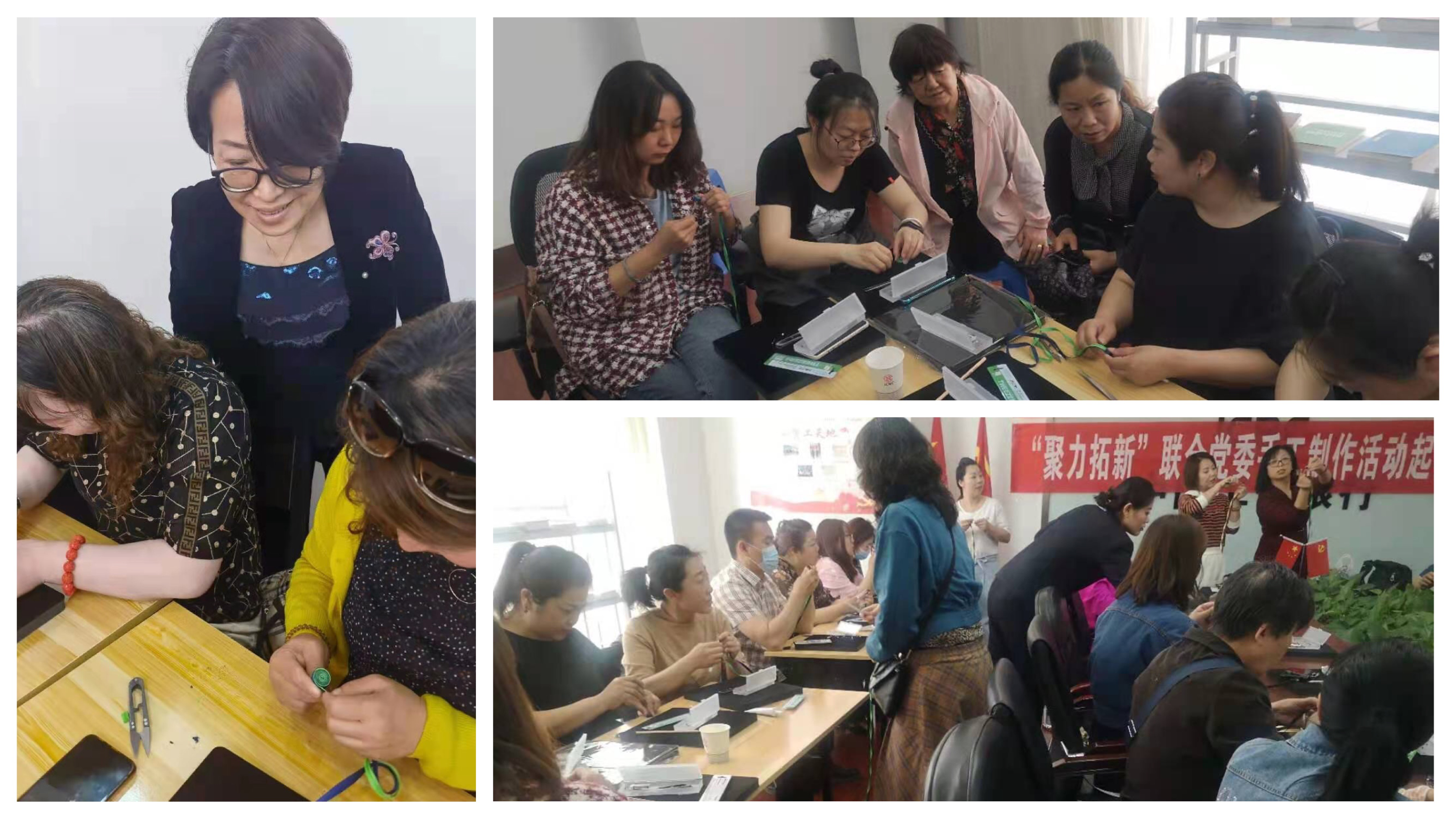 活动针对社区所辖农牧民工、下岗职工、陪读妈妈等特殊群体进行盘扣技能培训,并推荐对口就业。培训采取理论讲解与实践操作相结合的方式进行,为每位参训职工发放一套工具,并由专业老师面对面、手把手的耐心讲解盘扣的制作玄机,传授技能难点。授课内容丰富,学习氛围浓厚,不少女职工很快掌握了盘扣技能。