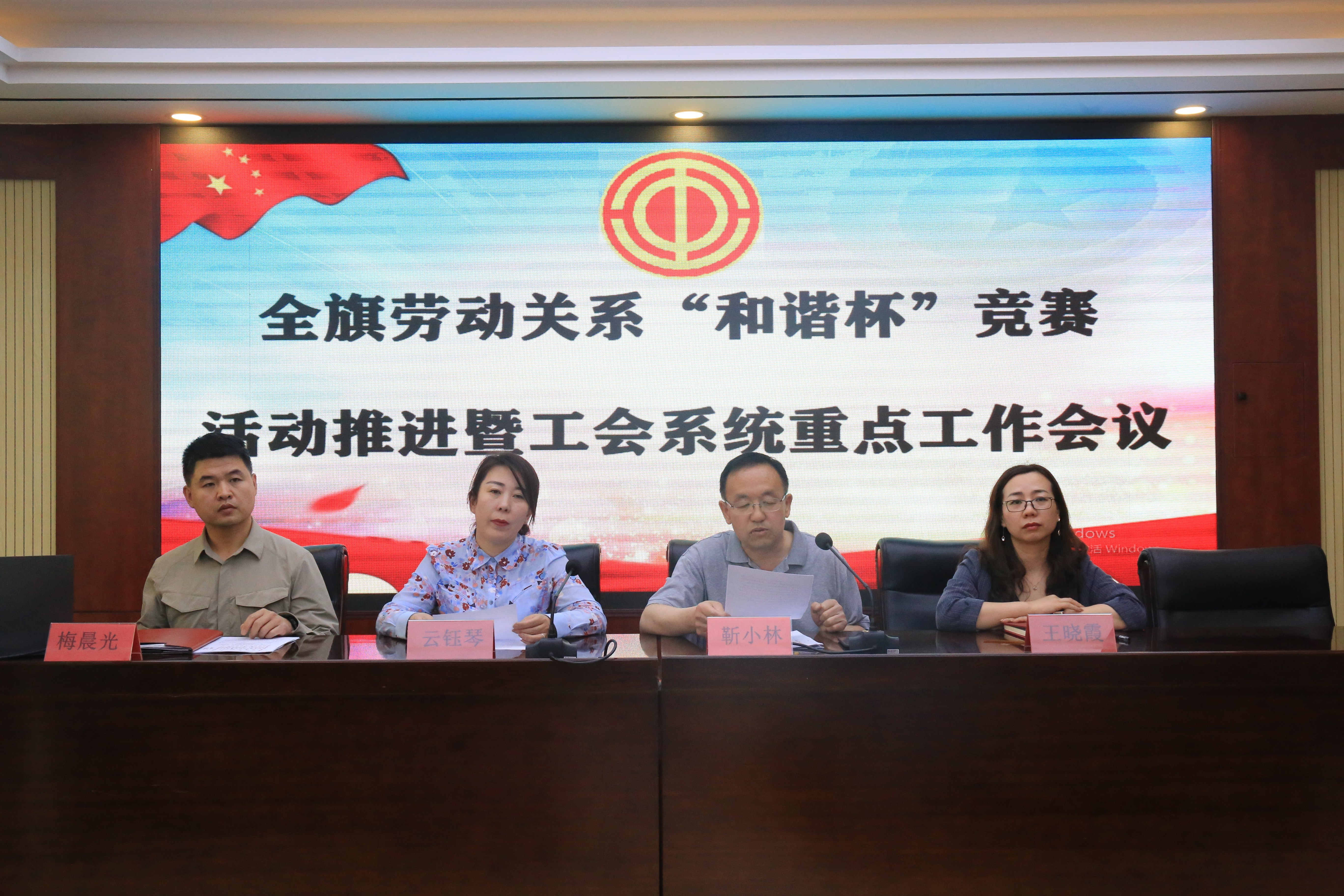 会上,靳小林传达了《关于开展2021年度全旗劳动关系“和谐杯”竞赛活动的通知》文件精神及安排部署2021年度集体合同与工资集体协商合同签订、职工医疗互助、困难职工救助等近期重点工作。