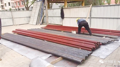 在如意小区A区,记者看到工人正在粉刷防腐漆,7号楼正在拆除单元立管;在B区和C区,工人正在拆除3号楼的单元立管,拆下来的一段旧管腐蚀非常严重,保温层已完全没有,防腐漆也分化了,一碰就一片片地掉下来。