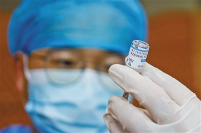 接种护士抽取新冠疫苗。