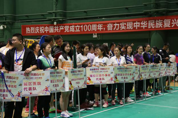 为庆祝中国共产党成立100周年,广泛组织开展好群众性文化体育活动,充分调动玉泉区干部职工的积极性,增强干部职工听党话、跟党走的思想自觉和行动自觉,以昂扬的精神状态、饱满的工作热情、优异的工作成绩向建党百年华诞献礼。5月27日上午,由中共玉泉区委直属机关工委、玉泉区总工会、玉泉区文体旅游广电局联合举办的2021年玉泉区庆祝中国共产党成立100周年“职工杯”羽毛球赛在内蒙古体育馆成功举办。本次比赛为期2天,共有来自区直机关单位的31支代表队的近200名运动员参赛。赛场秩序井然,加油喝彩声此起彼伏,赛场上运动员们施展技艺,充分展示了全区干部职工的活力和积极向上的精神面貌。